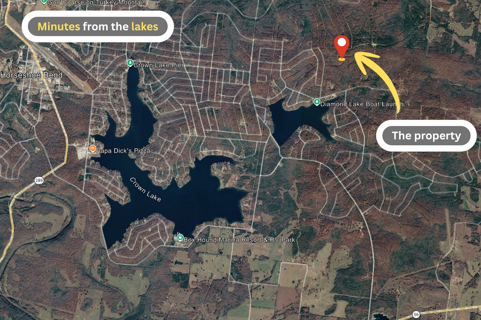 This property offers 0.63 acres in Izard County, Arkansas, located in the Horseshoe Bend area just minutes from Diamond Lake.