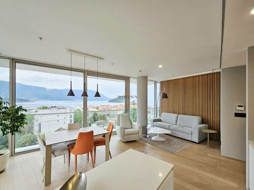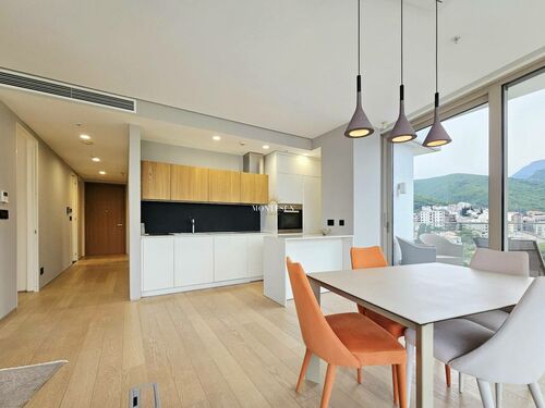 A luxury 2-bedroom apartment for long-term rent in the Dukley Residence complex, located in the very center of Budva on a quiet street.