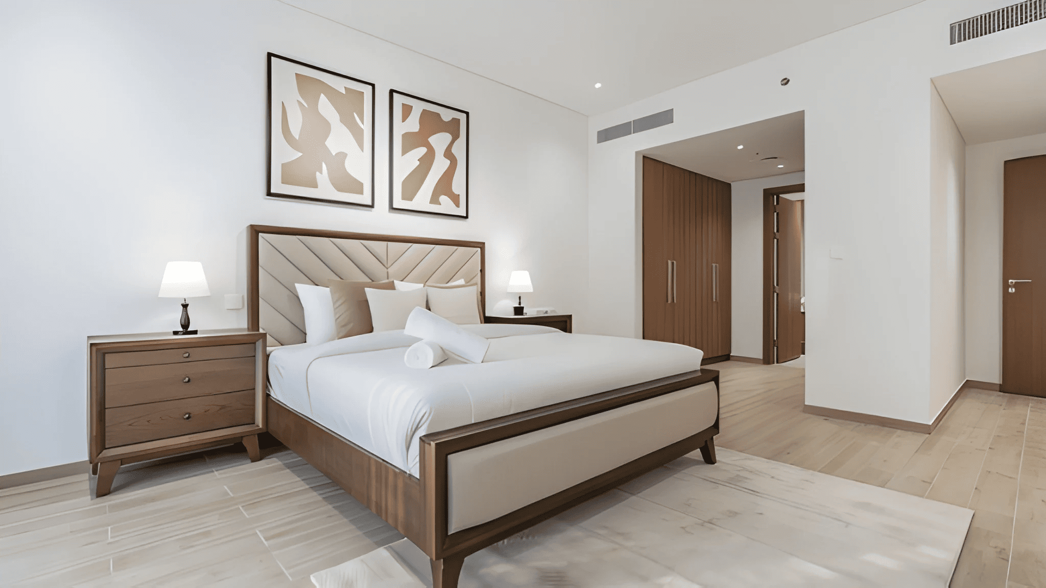 Private Master Suites: Two generous bedrooms, each with its own en-suite bathroom and direct access to the balcony, offering privacy and comfort.