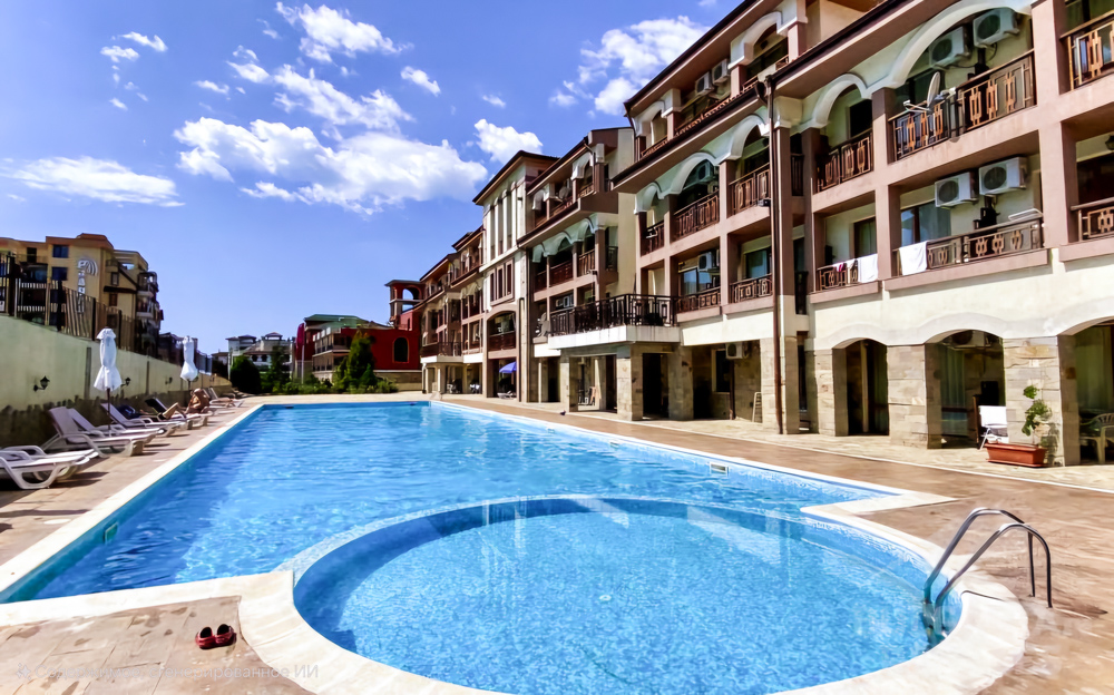 We offer for sale a spacious 2-bedroom apartment located on the ground floor in the Panorama Bay 1 complex in Sveti Vlas. The apartment has a total area of 75.19 m² and offers pleasant views of both the garden and the swimming pool, creating a relaxing and comfortable atmosphere.