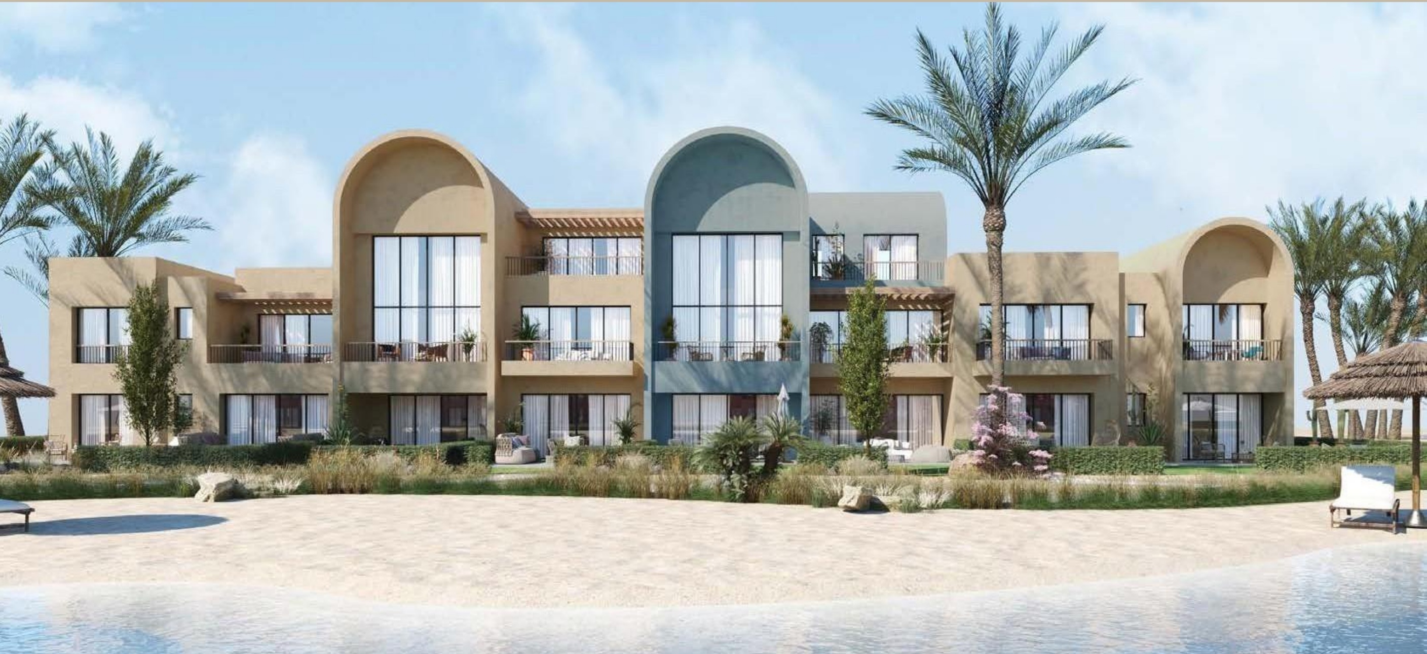 Beachfront apartments with sea view Egypt come to life at Kamaran – El Gouna, a lively new residential neighborhood blending architecture, nature, and relaxation. Designed as a family-friendly oasis, Kamaran features chalets and apartments overlooking scenic sand pools, landscaped zones, and peaceful walkways. Its biophilic design reflects El Gouna’s spirit — where every home connects with light, air, and water to create a serene and inspiring lifestyle.