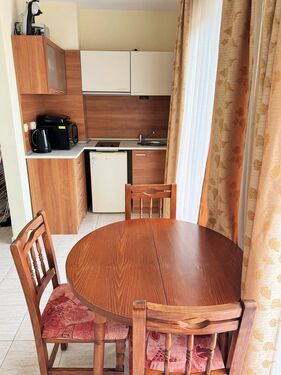The apartment is with an area of 55 sq.m. and it consists of an entrance hall, a living room with kitchen and dining area, one bedroom, a balcony in front of both rooms with Pool view and a bathroom with shower, toilet and sink. The apartment is for sale furnished as shown on the pictures and it is ideal for investment and renting out.