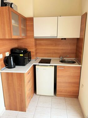 For sale is a furnished 1-bedroom apartment (1+1), located on the sixth floor /with lift/ in complex Pollo Resort, Sunny Beach. The complex is located at about 500 meters from the popular Cacao Beach area and at 2 km from the old town of Nessebar. Pollo Resort has a big outdoor swimming pool with section for children, pool bar, lift, parking, security, reception, gym and SPA.