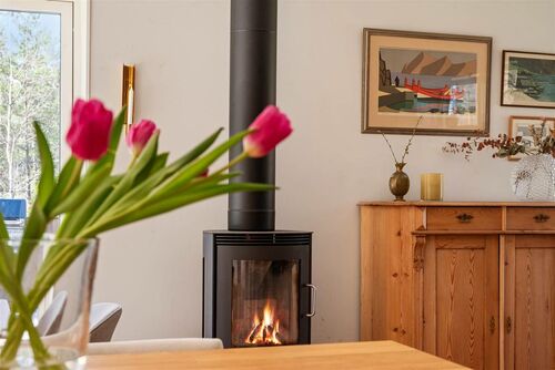 Your daily routine here follows the unhurried pace of island life. Morning begins with fresh coffee on the expansive deck, watching wildlife visit your garden. The flat terrain and thoughtful landscaping create distinct zones: perennial flower beds bursting with color, open lawn areas perfect for outdoor games, and quiet corners ideal for meditation or reading. The 20-square-meter outbuilding serves multiple purposes throughout the year, functioning as a workshop for creative projects, storage for kayaks and bicycles, or a potting shed for gardening enthusiasts. The included playhouse adds whimsical charm while providing entertainment space for children or grandchildren during family visits.