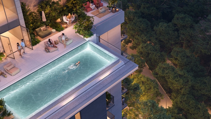 3-Bedroom Apartment - Size: 2,954 sq ft - Price: €1,127,000. Amenities: Swimming pool, fitness center, barbecue areas, and a co-working space for residents. Lounge with billiards and a gaming room for kids.