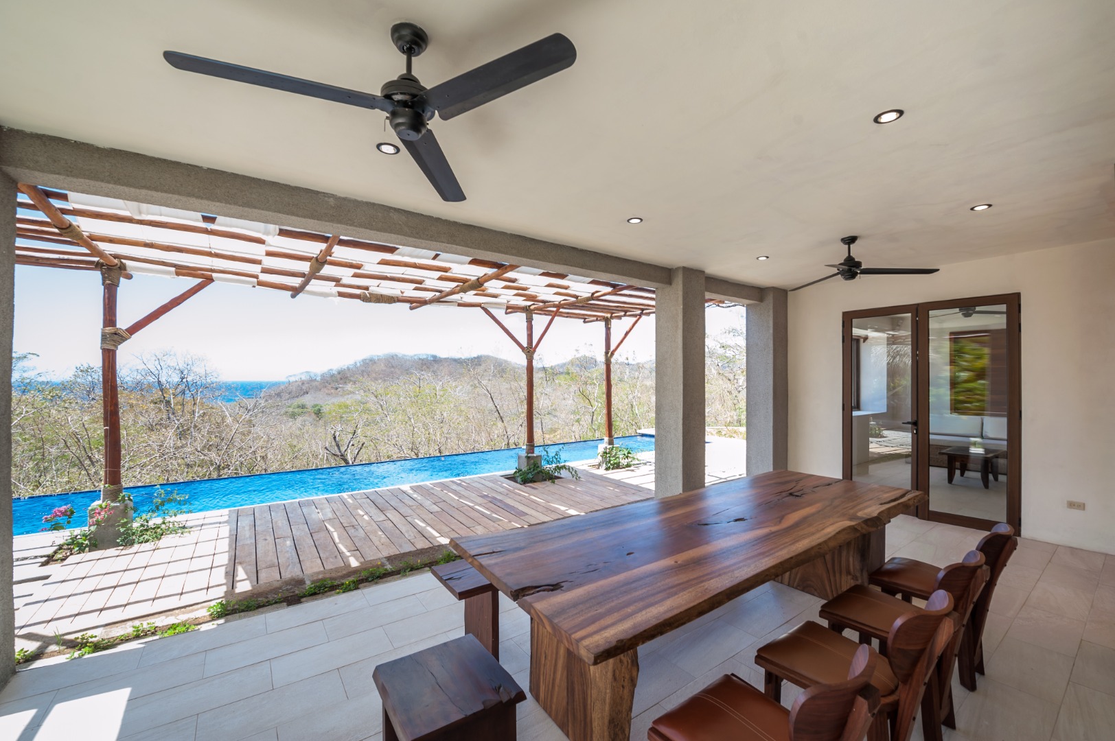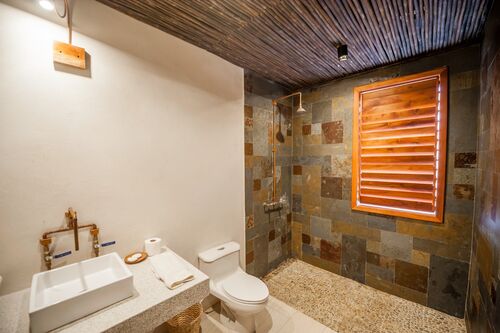 With multiple common areas, both indoors and outdoors, Casa Luna enhances relaxation and socialization. A palm-covered palapa provides an idyllic spot for lounging in hammocks or practicing yoga amidst nature. The private lap pool, overlooking the ocean, offers the perfect place to relax and soak up the sun or cool off after a day of exploration.