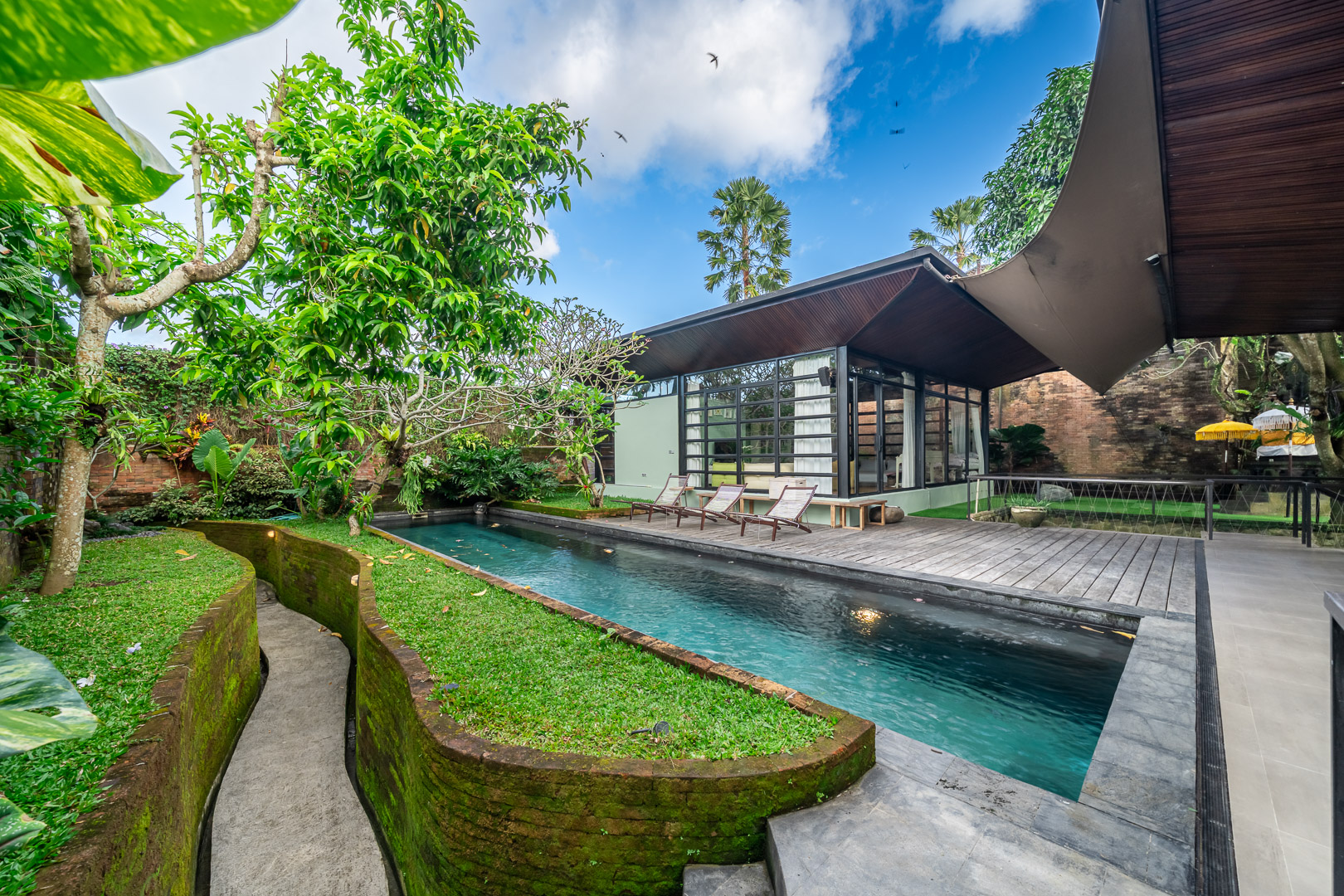 Twinshouse is a one-of-a-kind 4-bedroom designer villa located in the exclusive Penjiwaan Community, South Ubud. Designed by renowned German architect Alexis Dornier around three antique Javanese artefacts, this villa blends modern architecture with traditional Indonesian style.