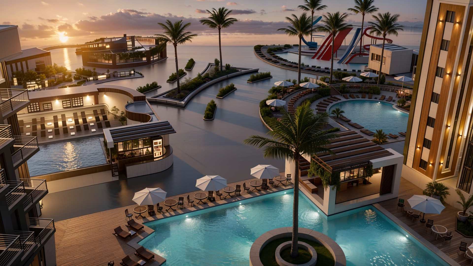 • 7 swimming pools (including heated pools)
