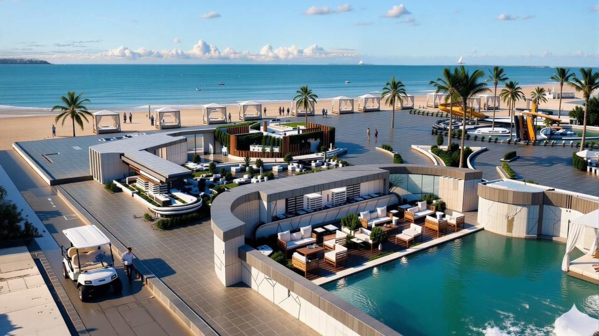 • Beachfront clubhouse, restaurants & cafés