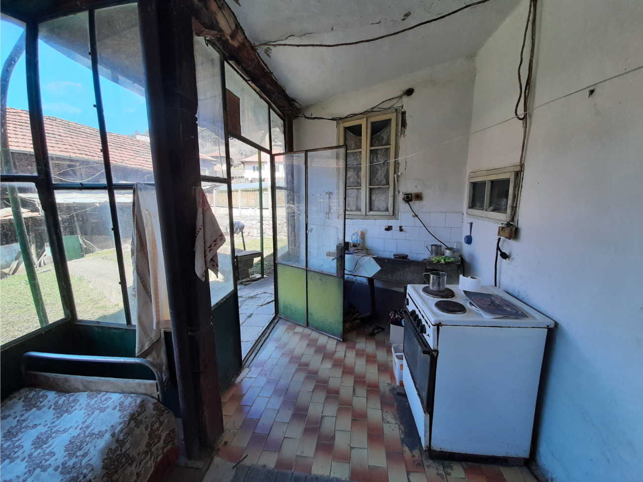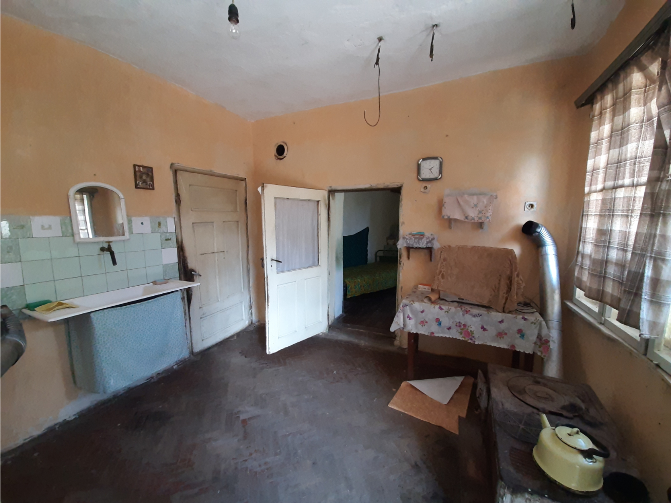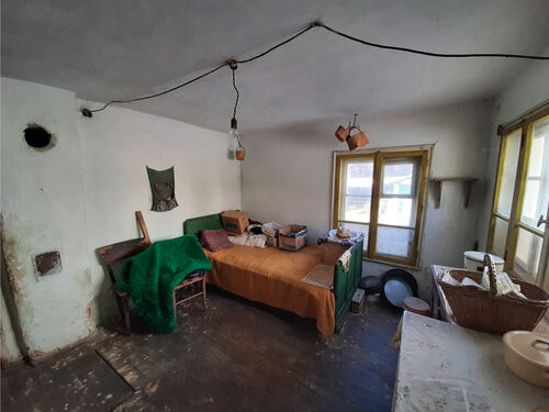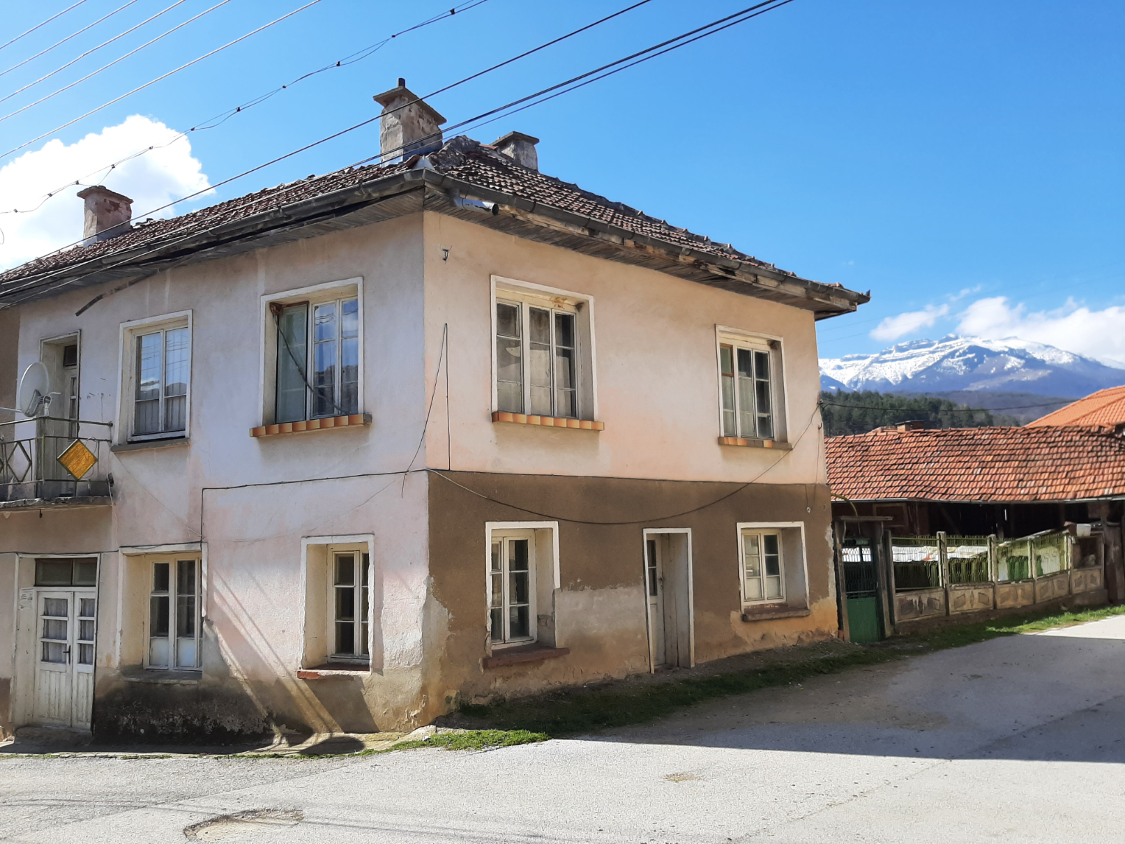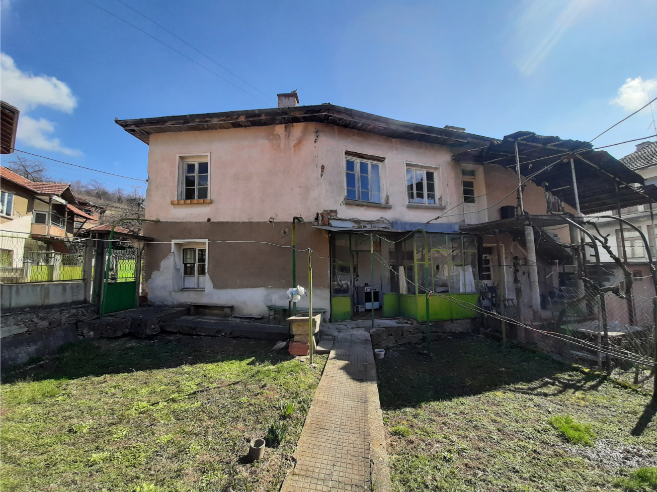 Country house with plot of land and nice location situated in a village in the mountains two hours away from Sofia and Sofia International Airport. The property is located on a quiet side street less than 50 meters away from the main square, school, shop, bar, library, post office, mayor`s office and small river. The house has two floors connected via internal staircase. The ground level consists of lobby, living room, dining room with kitchenette, bedroom, corridor and shower room. The second floor has three bedrooms, corridor and balcony which overviews the near properties. The garden is located at the back of the house where one can find the barn and storage. The property provides partial views towards the forest and mountain peaks located outside the village. The place had been empty for more than six years now so it requires certain amounts of renovation and work in order to be brought back to modern day living standards. The village is situated in a beautiful and peaceful mountain area within about two hours of driving away from the national capital city Sofia. The nearest town is about 20-25 minutes away by car and is the regional capital city for the area thus providing administrative services as well as many other amenities such as library, schools and kindergartens, hospital, dental care, police station, fire station, train and bus station, many different shops and stores for everything from daily items and food through clothing, shoes, construction materials, tools and spare parts, furniture and much more. The village is served by bus line which goes to that town and back twice a day. Nice rural property with great potential and location at a fair price.