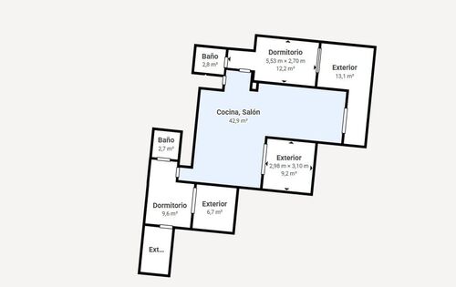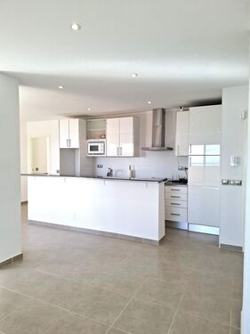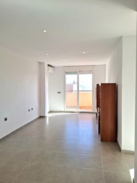 La vivienda se distribuye en un gran salón dividido en dos zonas, una puede dedicarse al salón y la otra puede utilizarse a modo de comedor. Cada una de ellas con acceso a una terraza distinta independiente lo que dota a la estancia de luminosidad y amplitud. La cocina, se encuentra abierta, unida al salón y perfectamente amueblada. Dispone de una barra americana a conjunto con la encimera muy útil a la hora de cocinar.