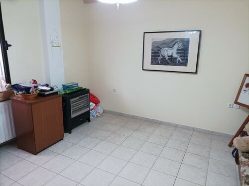 The property is developed on the ground floor and consists of two comfortable bedrooms, a bright living room that serves as a reception area, a functional kitchen, and a full bathroom. The tiled floors, energy-efficient aluminum frames with double glazing, and energy class C ensure modern comfort. The autonomous oil heating with full soundproofing and thermal insulation makes it economical and efficient. The property is painted, corner, façade, airy, sunny, and bright, with screens and a storage space.