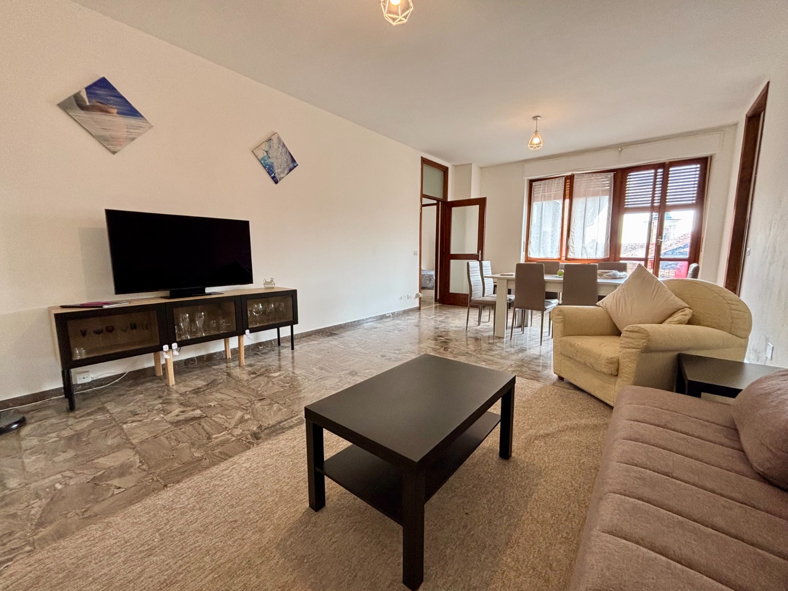 The apartment is located in the central area of this lovely town, a safe and quiet area with a beautiful view of the mountains. It has 3 balconies, very large bedroons and 2 bathroons restylished 2 years ago.