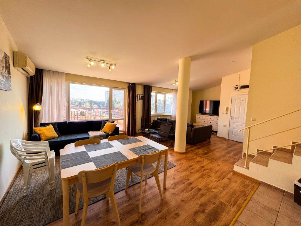 IBG Real Estates is pleased to present this spacious and beautifully arranged apartment with 2 bedrooms and 2 bathrooms, on two levels, located in the well-managed Green Fort complex between Sunny Beach and Sveti Vlas. Situated on the 4th floor, the property offers comfort, space, and lovely sea and mountain views – an excellent choice for both holiday use and investment.