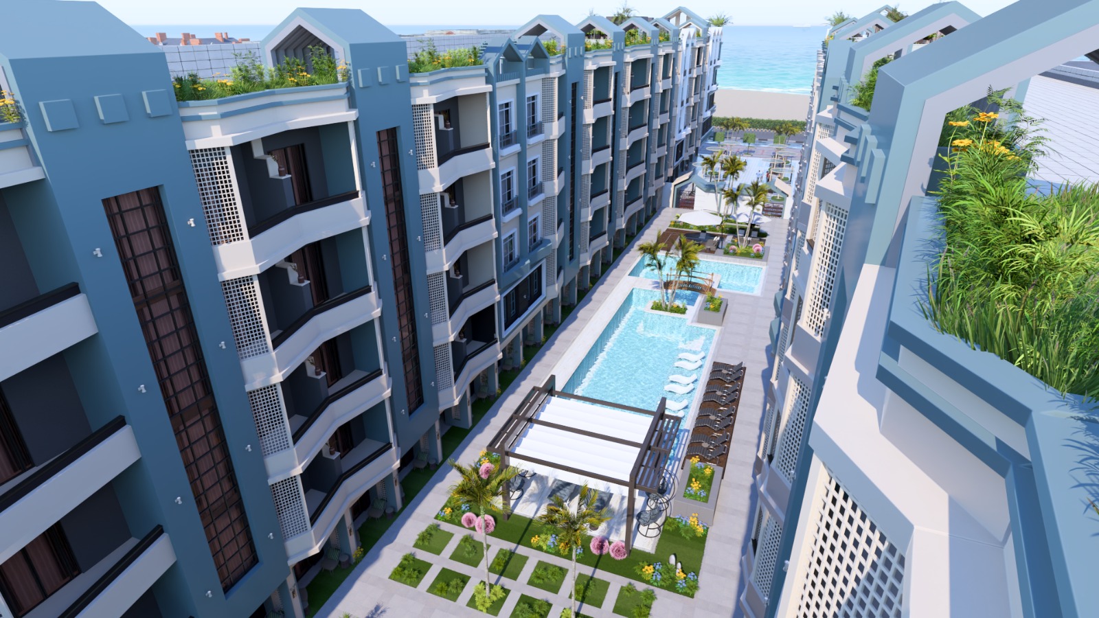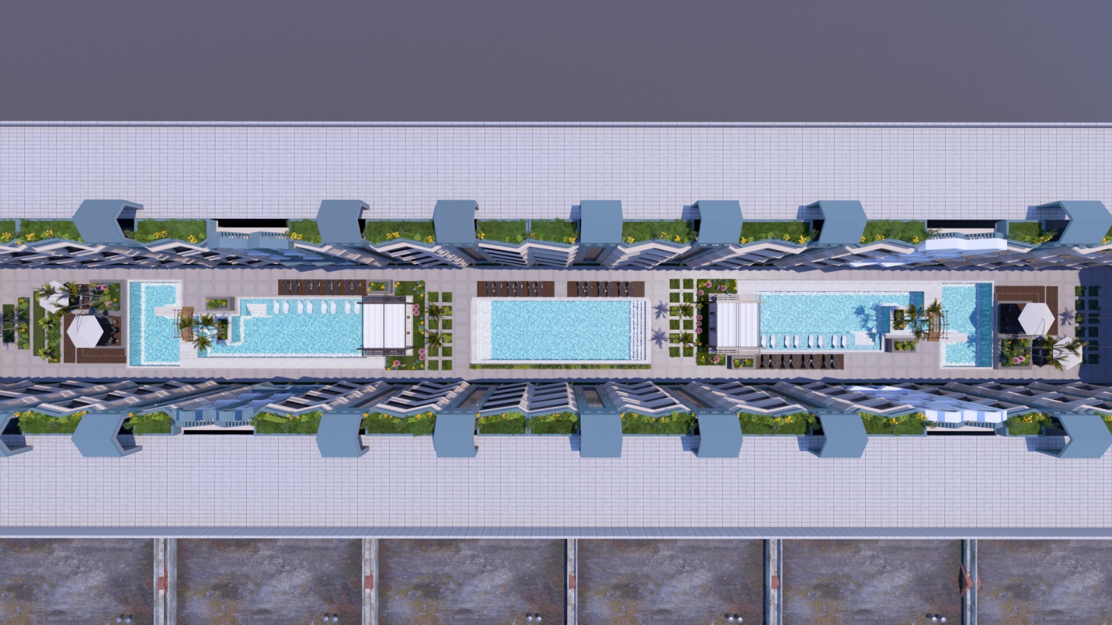Rooftop terraces and open relaxation areas