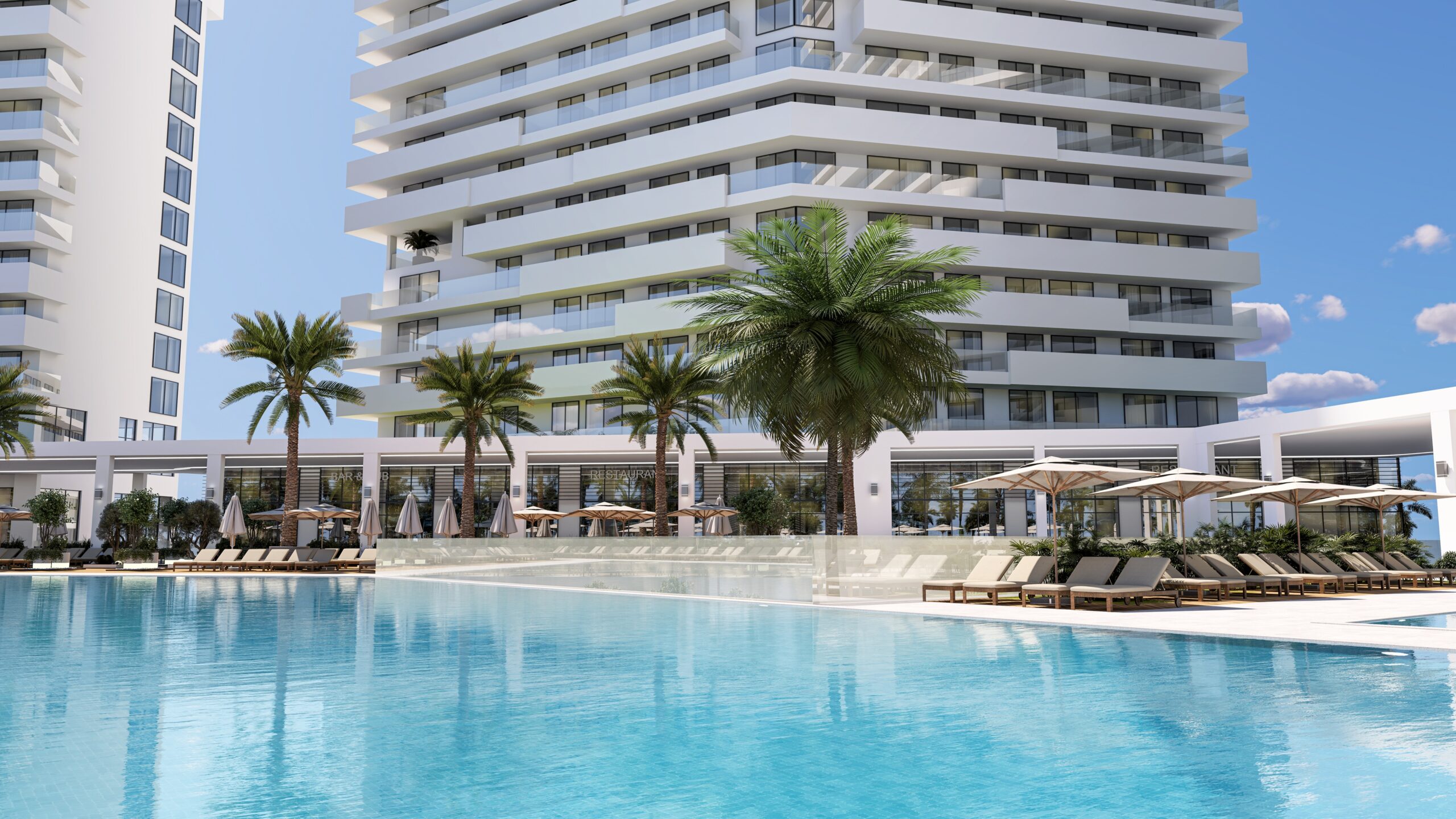 This seafront property for sale in North Cyprus offers stunning 180° Mediterranean views and is located just 400 m from the beach in Trikomo. Built across four modern blocks – one resort and three residential – it combines commercial zones, vibrant leisure areas, and full resort-style living. Designed with modern architecture and high-quality finishes, it is ideal for buyers seeking North Cyprus sea view apartments for sale or long-term North Cyprus real estate investment.