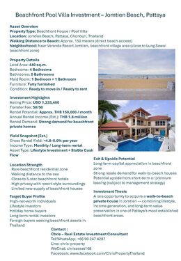 Beachfront Pool Villa – Jomtien, Pattaya | Investment Opportunity