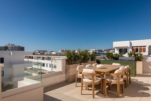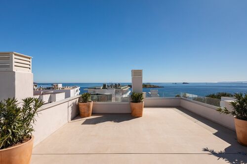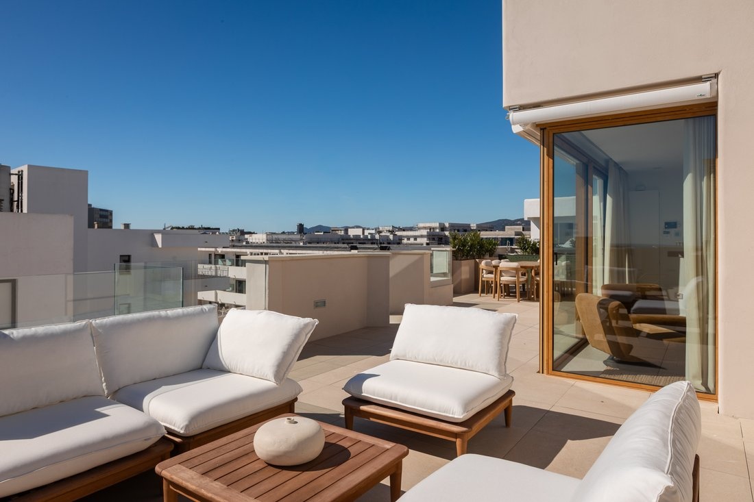 Modern and very bright penthouse for rent in one of the most sought-after areas of Ibiza, between Es Viver and Playa d’en Bossa. The property is located on the top floor and offers a high level of privacy, with open views of the sea and Dalt Vila.