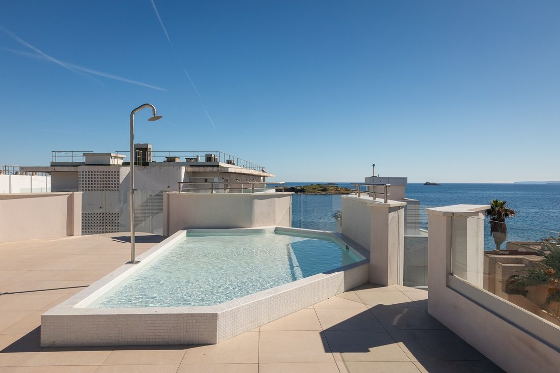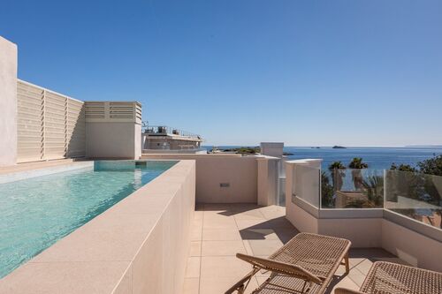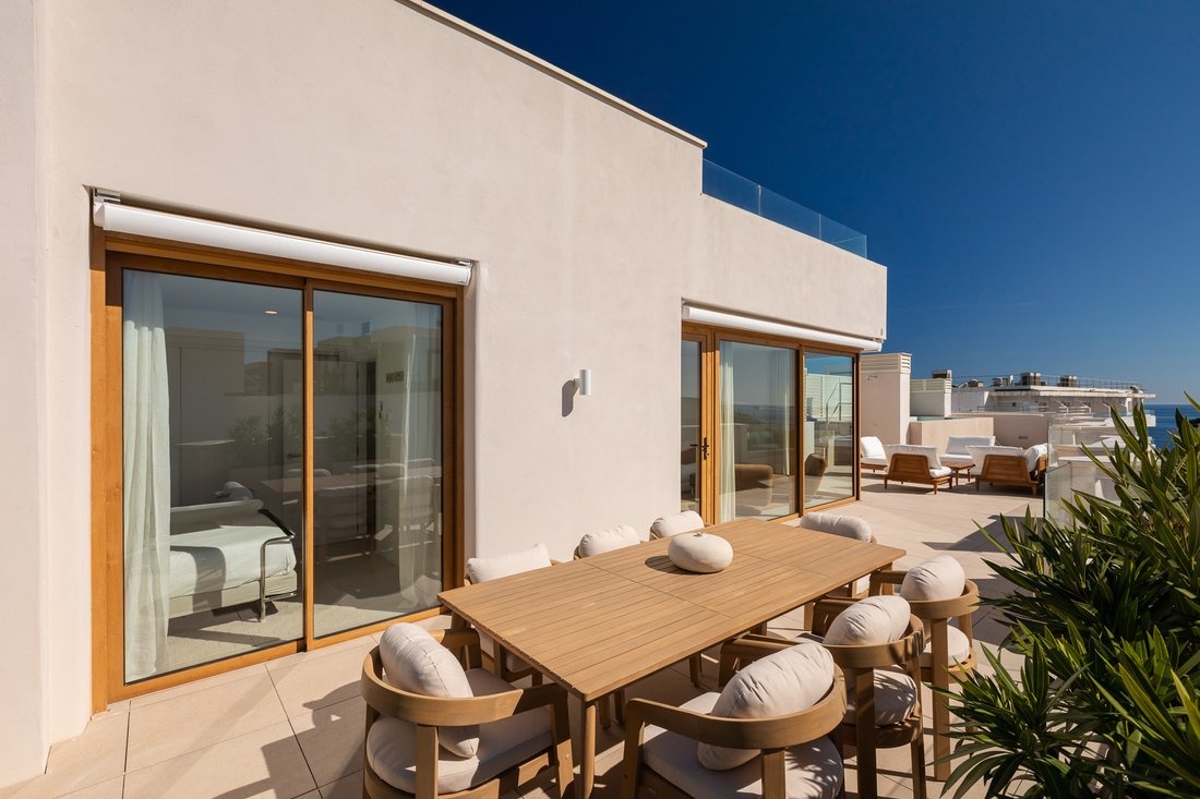 What makes this penthouse special are its terraces on two levels, offering enough space to enjoy outdoor living all year round. The main terrace includes a private pool, an outdoor kitchen area, and a shower, ideal for relaxing or spending time with friends.