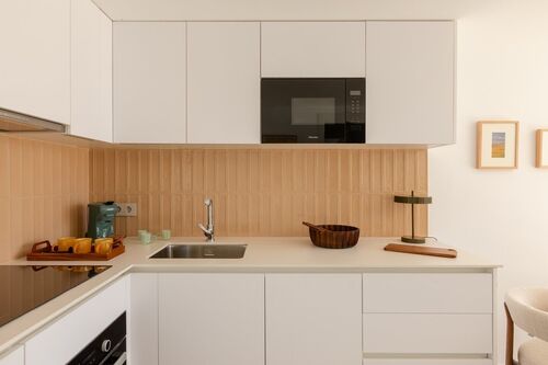 The apartment has 85 m² well distributed, featuring a spacious living room, a fully equipped open-plan kitchen, two bedrooms, and two bathrooms. Everything is in very good condition and ready to move in.