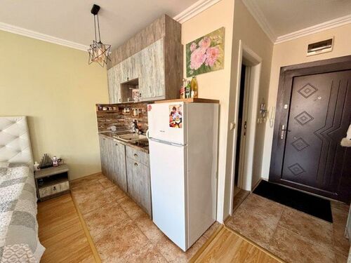 The studio has a total area of 39.52 sq.m. and offers a practical layout. It consists of one room combining kitchen, dining and sleeping areas, a balcony, and a bathroom with toilet and sink. This apartment is for sale furnished and equipped as shown on the photos and it is ideal for permanent living, holidays or renting out.