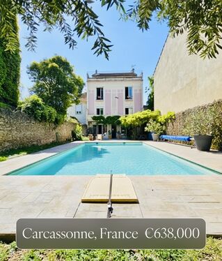 Distinctive early 20th-century house in Carcassonne’s sought-after Bastide area with panoramic views over the Cité and city skyline. Original moldings and parquet complement modern upgrades throughout spacious living areas, bedrooms, and a 60m² panoramic terrace. Set on a private cul-de-sac with pool, ideal for family living or entertaining.