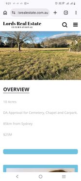 10 Acres – DA Approved Cemetery