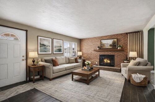 Enjoy relaxing evenings in the inviting living room featuring a classic brick fireplace, along with comfortable bedrooms and a functional layout perfect for everyday living. A two-car garage plus an additional storage shed provide plenty of space for vehicles, tools, and hobbies.
