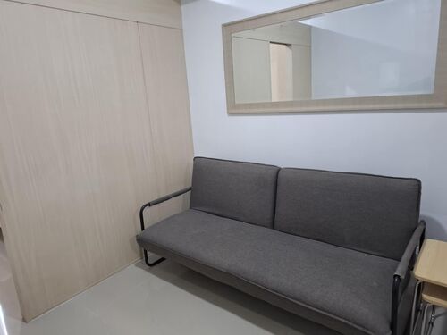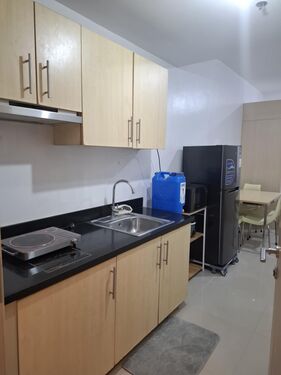 1 Bedroom. Floor Area: 25.52 sqm. Fully Furnished newly repainted with brand new inverter aircon, inverter refrigerator, microwave oven, shower heater, induction stove, sofa bed, double bed