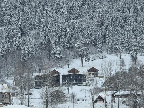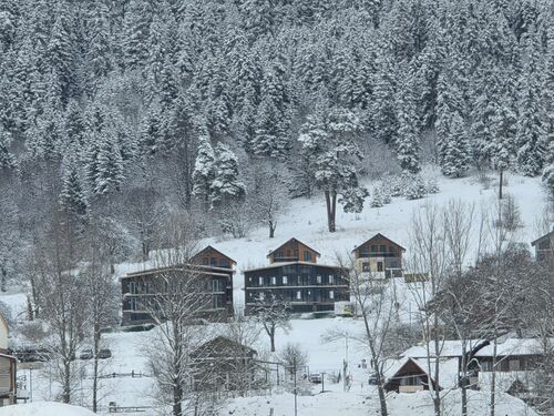 The cottages are located in Georgia's most popular ski resort, Bakuriani, which stands out from other resorts with its unique climate, which is in demand year-round.The cottages are located next to a forest with panoramic views of the mountains and Bakuriani.