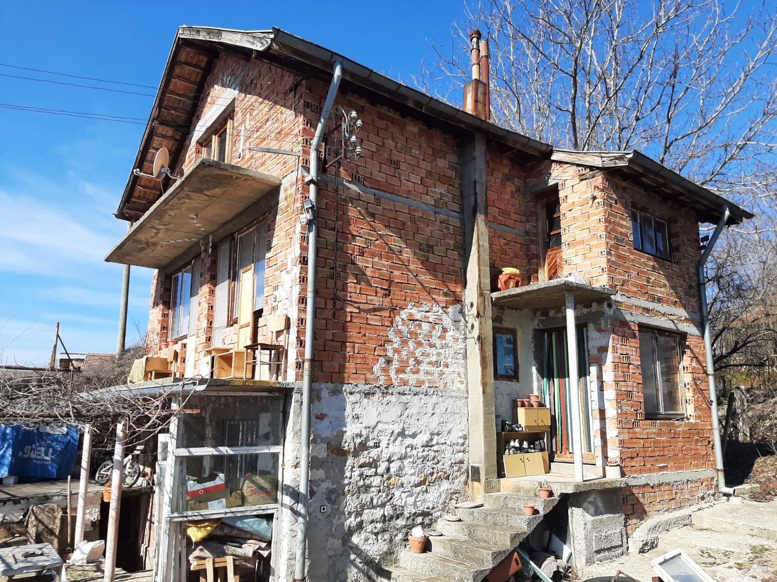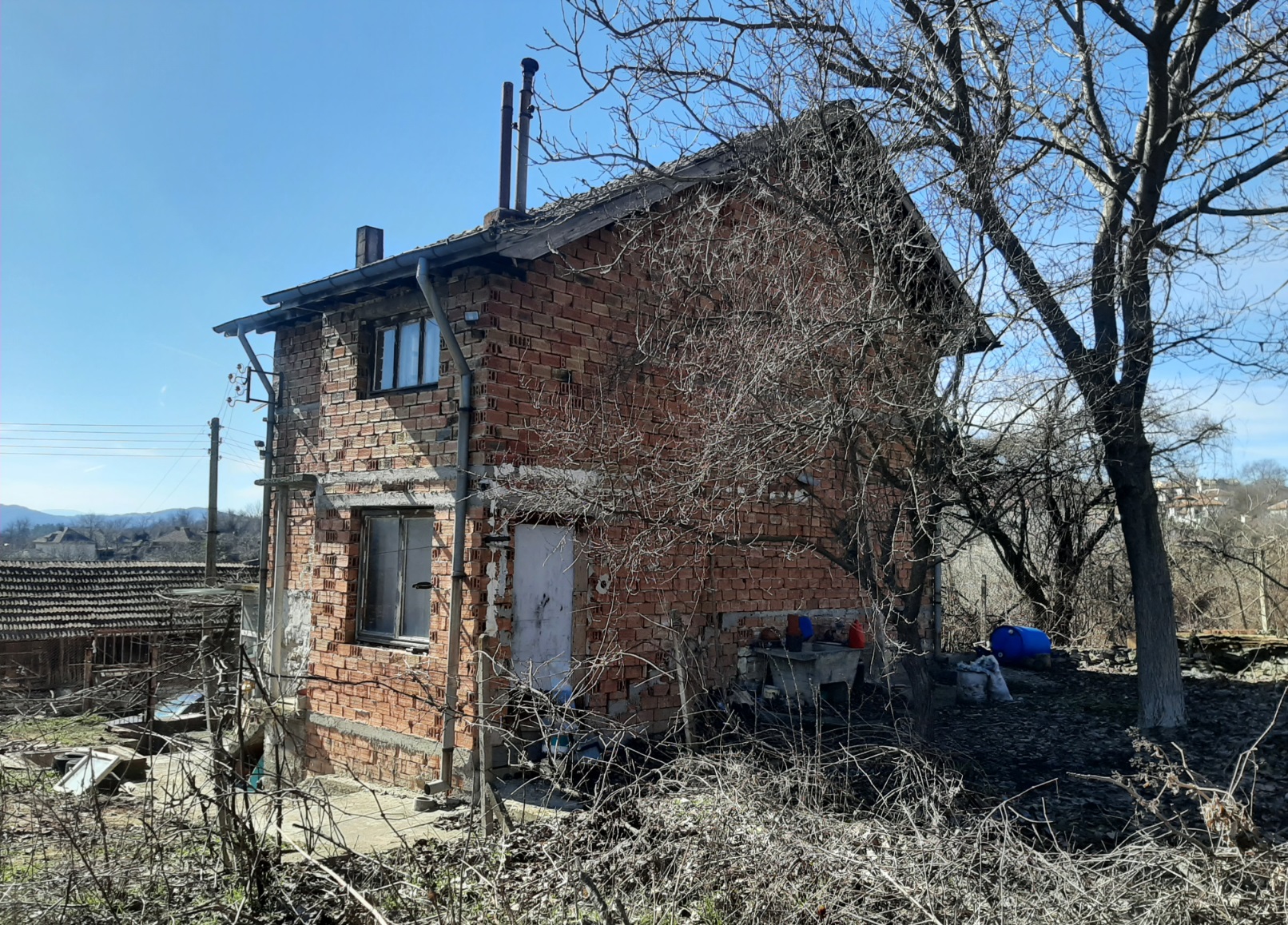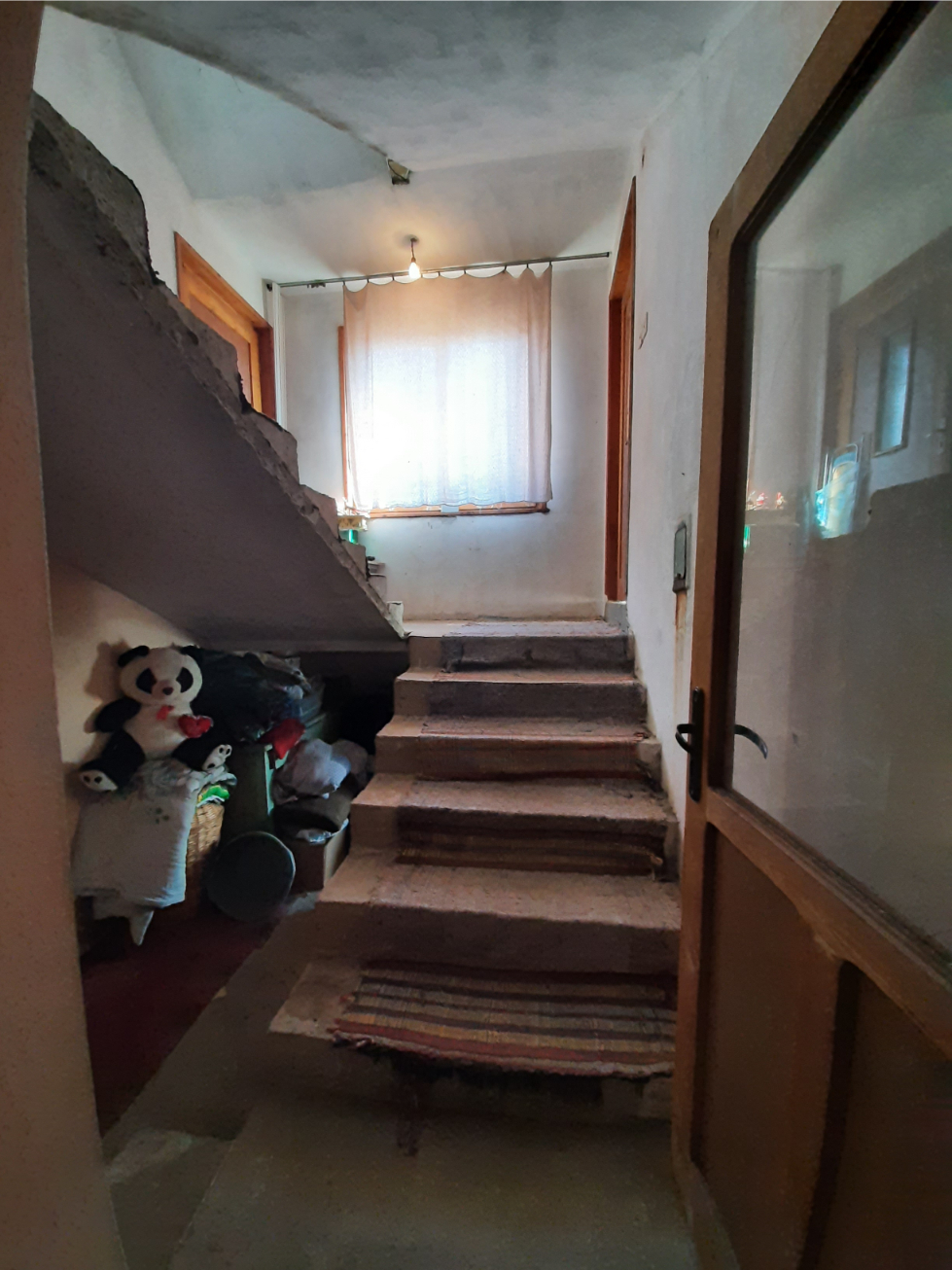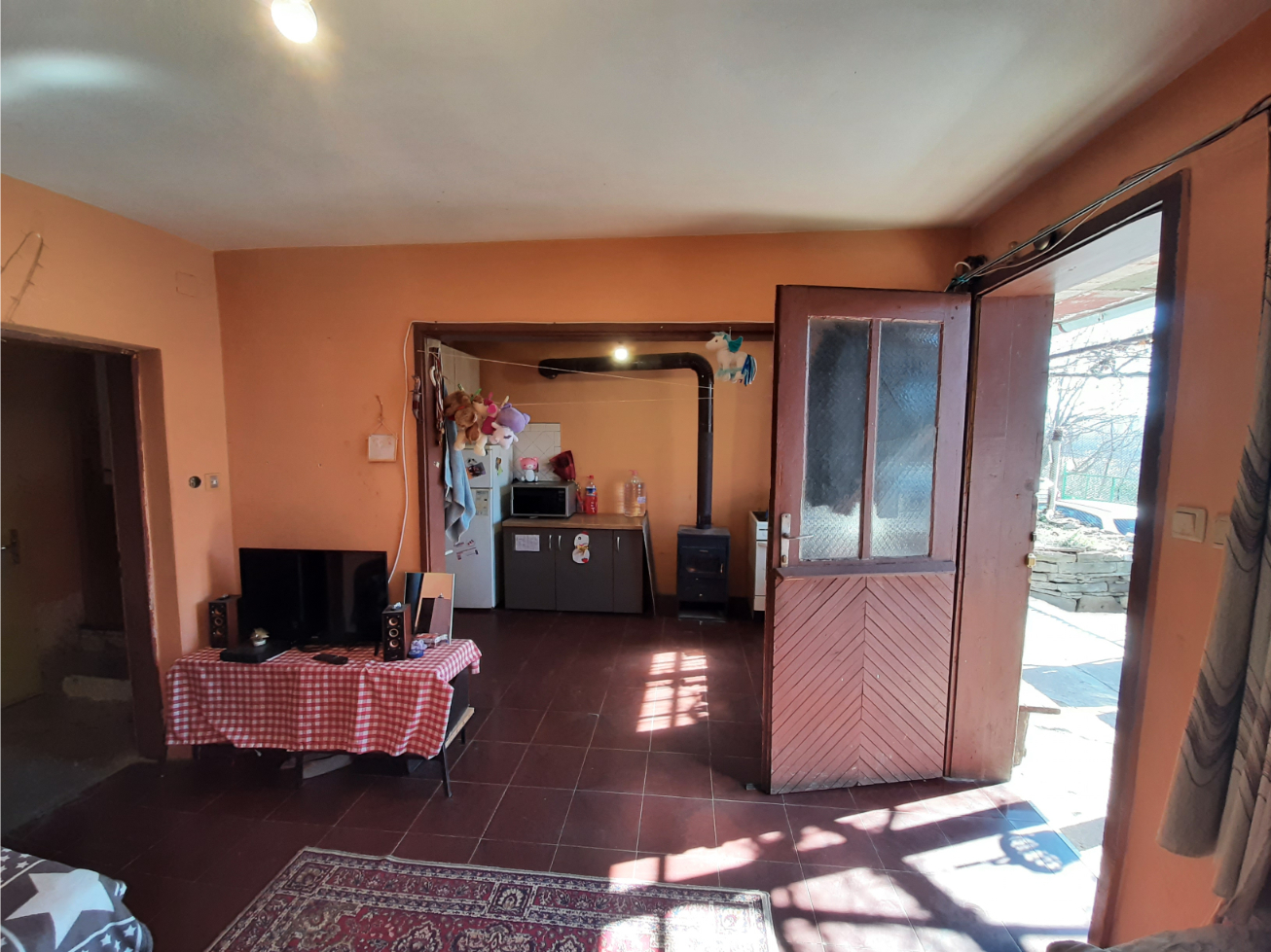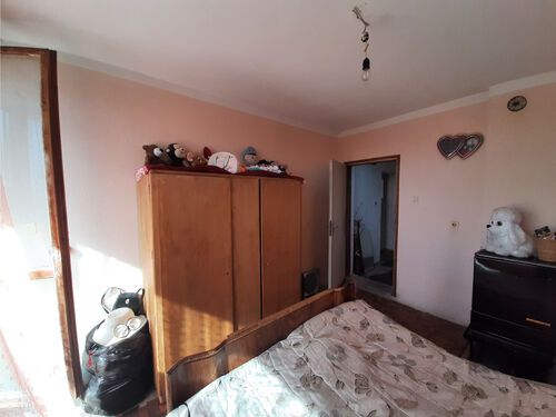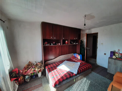 Solid country house with quiet location and nice views 100 km northeast of Sofia, Bulgaria. The property is located in a peaceful countryside village several kilometers away from river, train stop and monastery. The house has two floors and attic level all of which are connected through solid internal staircase. The ground level holds spacious living room with kitchenette, shower room with toilet, and storage room. The second floor has two bedrooms with common terrace providing plenty of natural sunlight into the rooms and nice views towards the surrounding area and the hills outside the village. The attic level had been partially converted into living area which holds storage room, bedroom and closet. The property also has garage. It is solid and wide and also has a pit which is very useful if one wants to inspect a vehicle or do some small repairs on it. The property comes also with a medium sized piece of land which provides good conditions for gardening and offers additional space for swimming pool, gazebo, children playground, BBQ area, etc. The village where the house is situated is about 12 km away from the nearest town and about 100 km from Sofia and Sofia International Airport. The near town is the seat of the local council and provides administrative services for the area as well as hospital, dental service, schools and kindergartens, police station, fire station, shops and stores for food, materials, clothing, etc, gas stations, train station with direct rail links to Sofia, the Black sea coast and many other parts of Bulgaria. Solid rural house with lots of potential waiting for new owners.