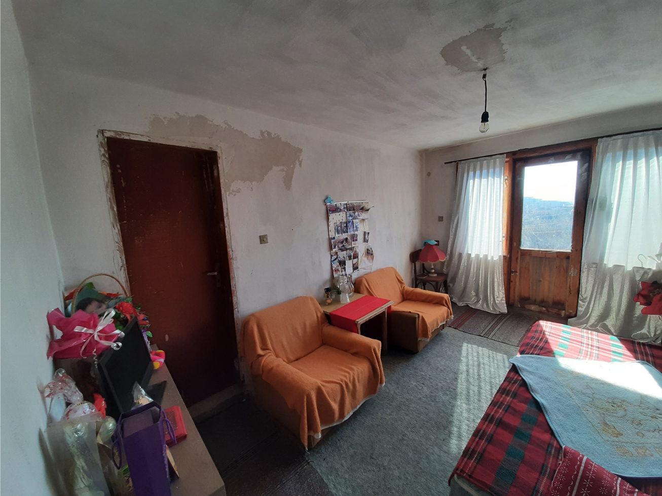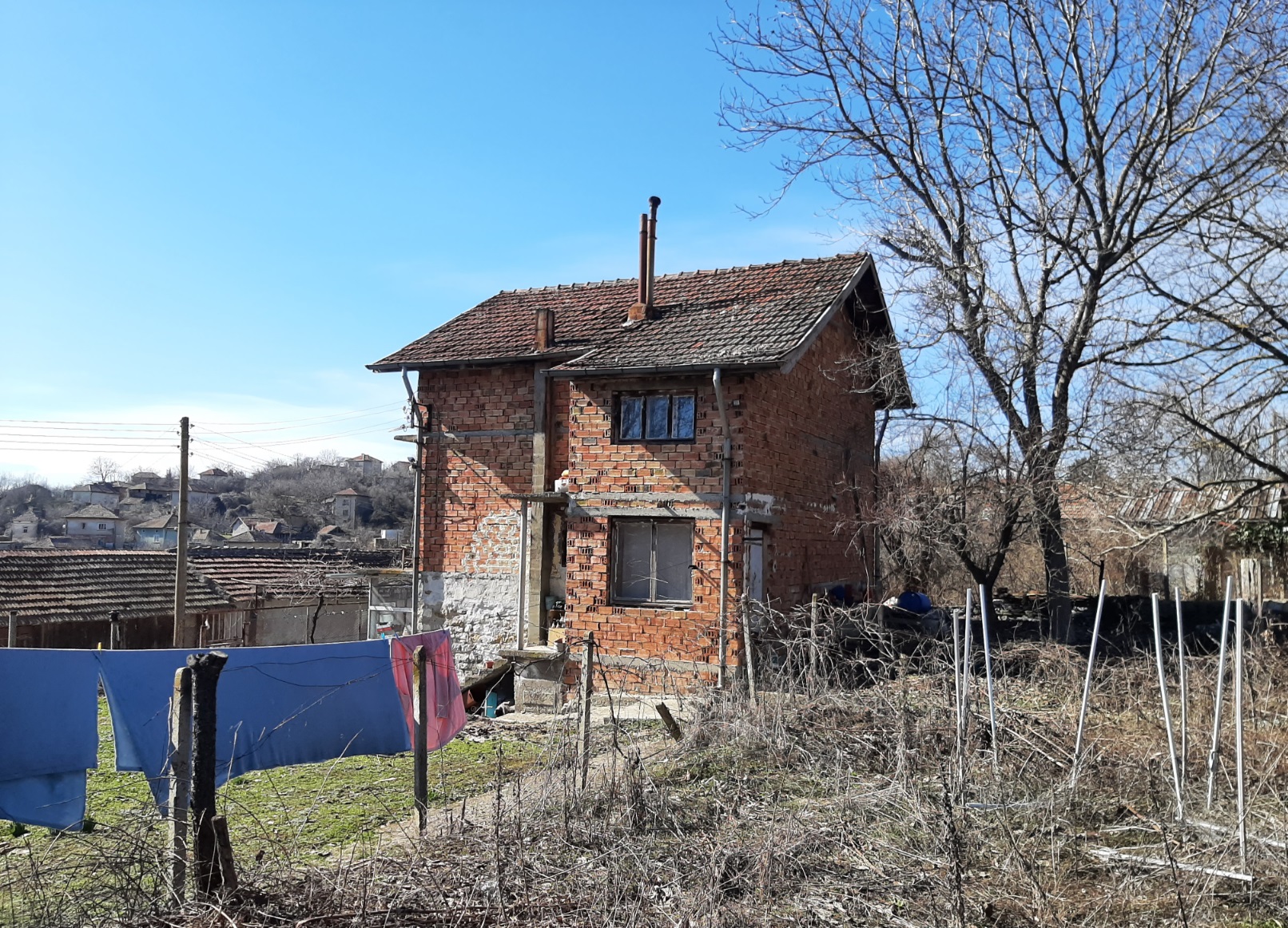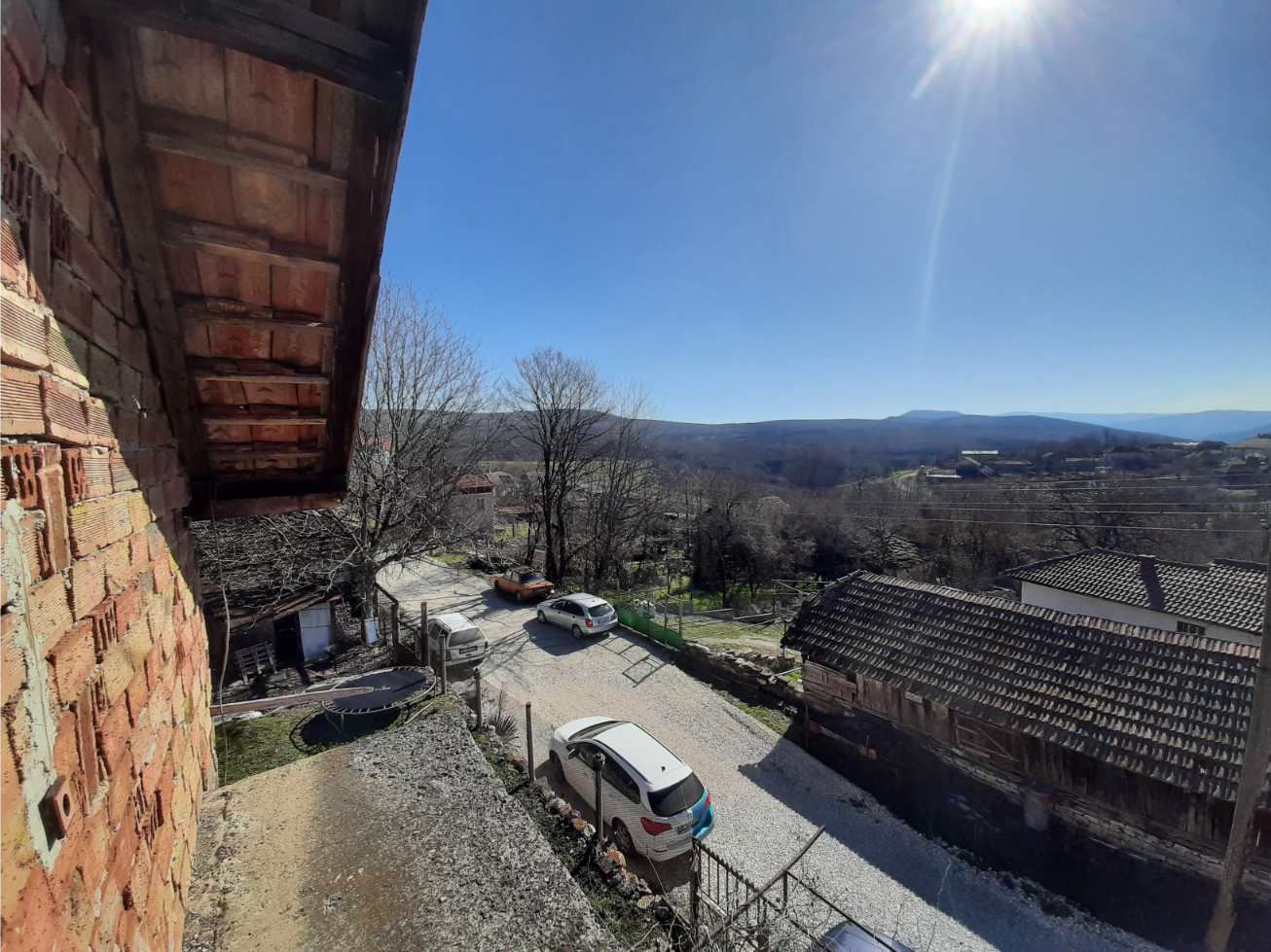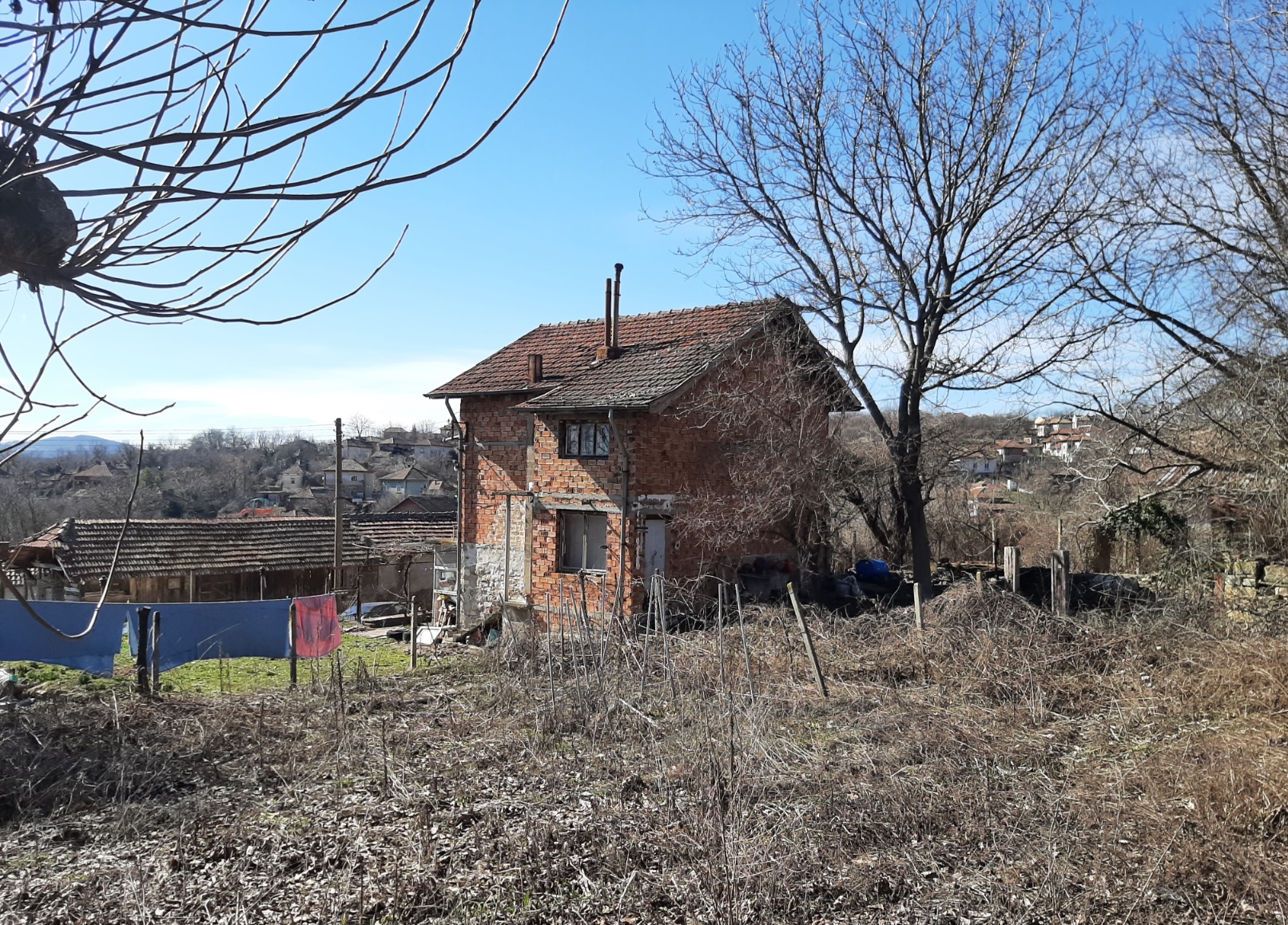 Solid country house with quiet location and nice views 100 km northeast of Sofia, Bulgaria. The property is located in a peaceful countryside village several kilometers away from river, train stop and monastery. The house has two floors and attic level all of which are connected through solid internal staircase. The ground level holds spacious living room with kitchenette, shower room with toilet, and storage room. The second floor has two bedrooms with common terrace providing plenty of natural sunlight into the rooms and nice views towards the surrounding area and the hills outside the village. The attic level had been partially converted into living area which holds storage room, bedroom and closet. The property also has garage. It is solid and wide and also has a pit which is very useful if one wants to inspect a vehicle or do some small repairs on it. The property comes also with a medium sized piece of land which provides good conditions for gardening and offers additional space for swimming pool, gazebo, children playground, BBQ area, etc. The village where the house is situated is about 12 km away from the nearest town and about 100 km from Sofia and Sofia International Airport. The near town is the seat of the local council and provides administrative services for the area as well as hospital, dental service, schools and kindergartens, police station, fire station, shops and stores for food, materials, clothing, etc, gas stations, train station with direct rail links to Sofia, the Black sea coast and many other parts of Bulgaria. Solid rural house with lots of potential waiting for new owners.