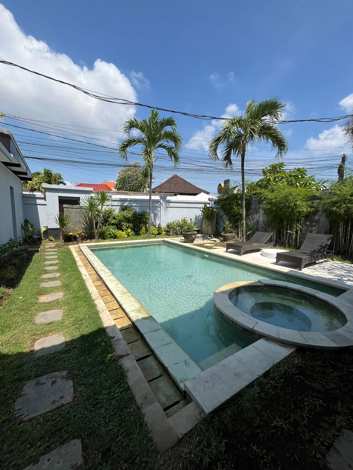 - Private swimming pool with terrace set amidst tropical greenery