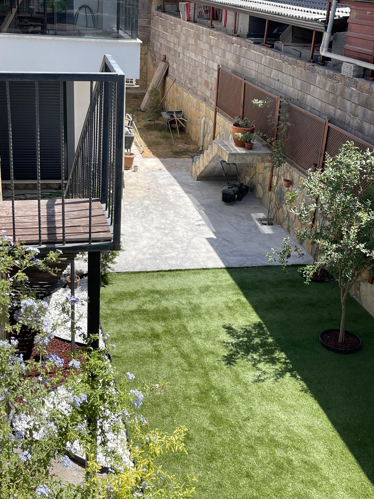 The 600 m² property on two levels features a large selection of mature ornamental plants, olive trees, and plenty of grassy areas to get creative.