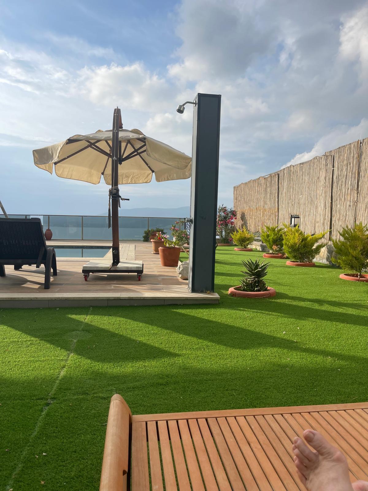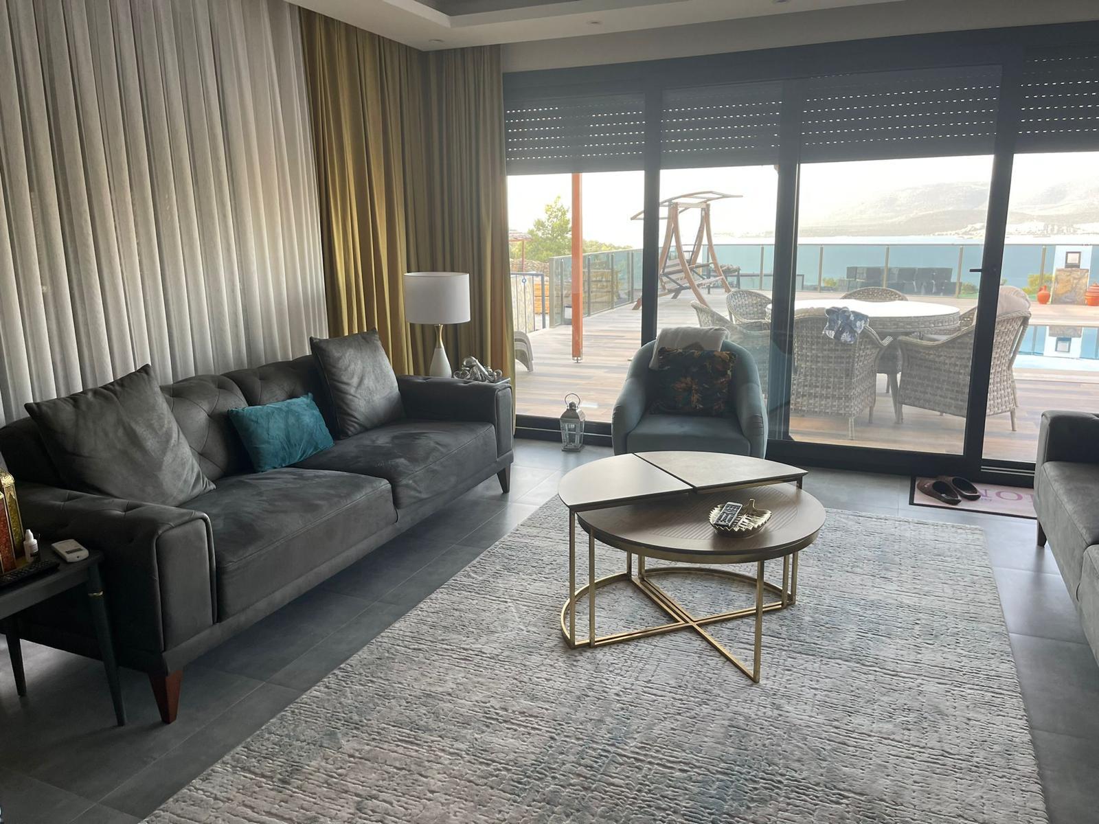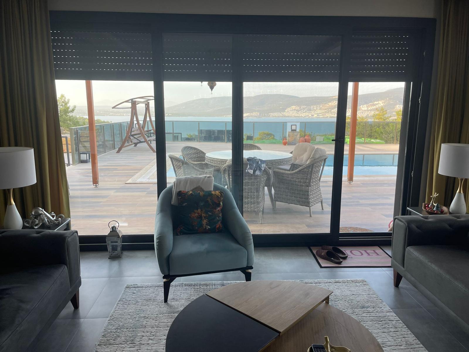 We are selling our beautiful 4-bedroom luxury villa on a hillside with unobstructed sea views, a large pool, and a professionally landscaped garden in Akbük, Türkiye.