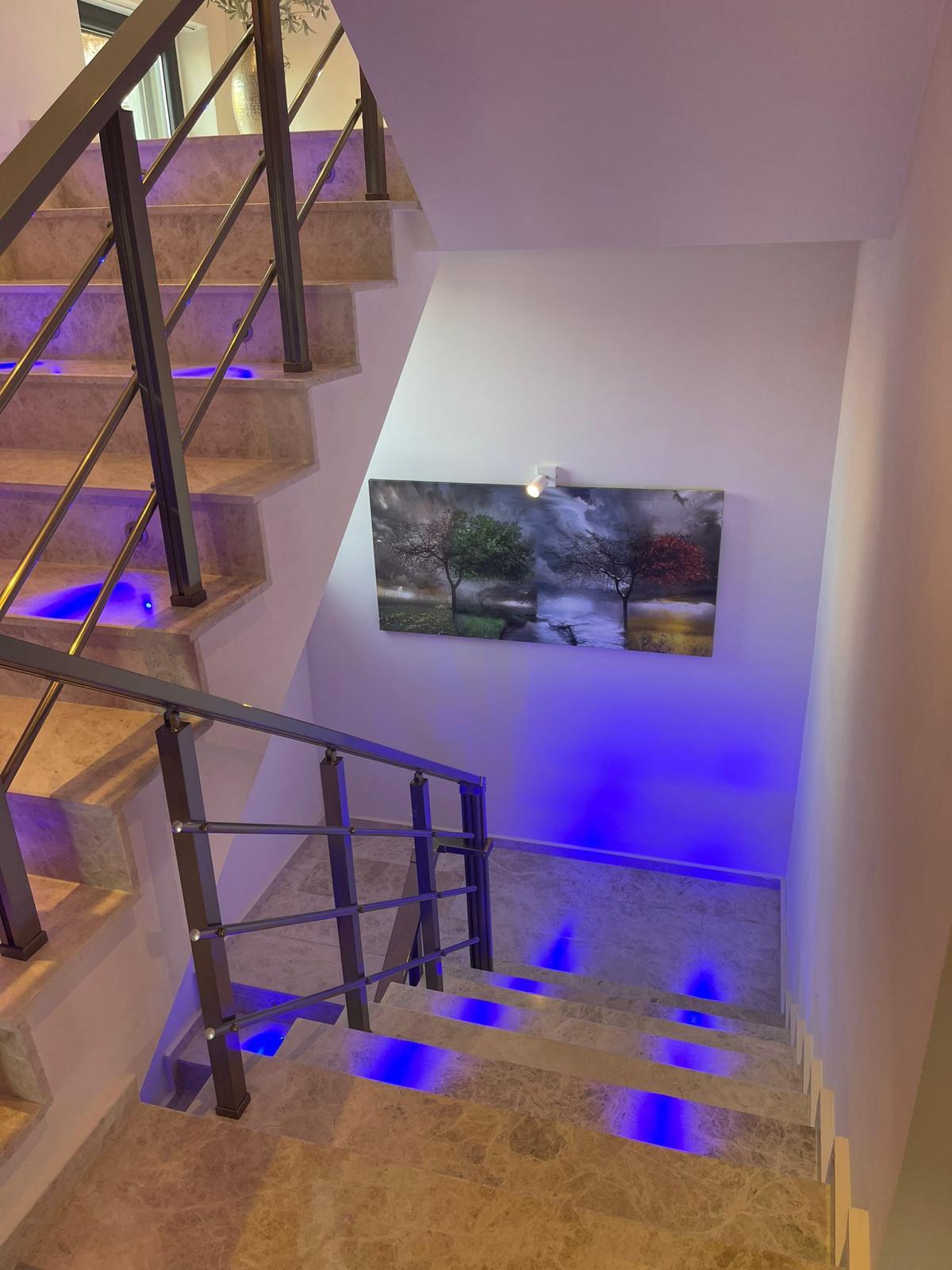 Spread over 3 floors with a total area of 240 m², there are 4 large bedrooms (2 ensuite), 3 bathrooms (1x corner bathtub, 2x large shower) and a guest toilet. All rooms are equipped with king-size beds and spacious built-in wardrobes. All rooms in the house are equipped with air conditioning for a comfortable living environment on warm days and have access to balconies or terraces.