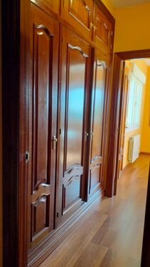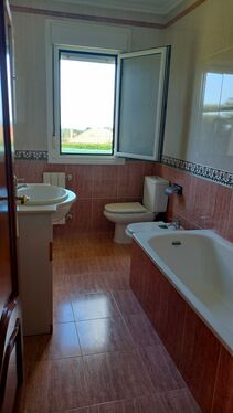 The house was built with quality materials, featuring fitted wardrobes in three bedrooms and the hallway, wooden flooring in living areas and bedrooms, and ceramic tiling in bathrooms and kitchen.