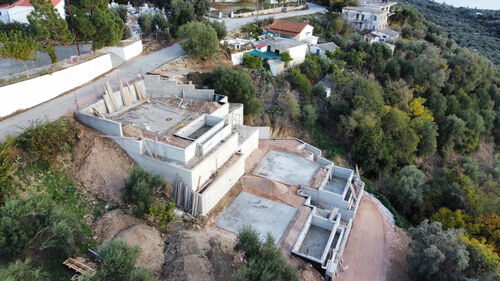 In the idyllic Kastrotsykiá of Preveza, a luxurious 78 sq.m. maisonette is available for sale, under construction, on a 220 sq.m. plot, with a private pool of 25 sq.m. and panoramic views of the Ionian Sea. The residence is part of a modern project featuring three two-story CLT homes, designed for ultimate comfort, high energy efficiency, and unobstructed views of the sea and sunsets.