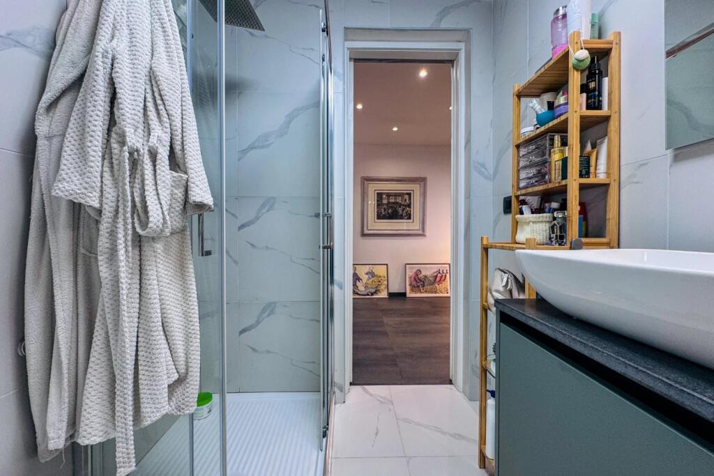 - Bathroom: Stylish and compact, featuring a cubicle shower.