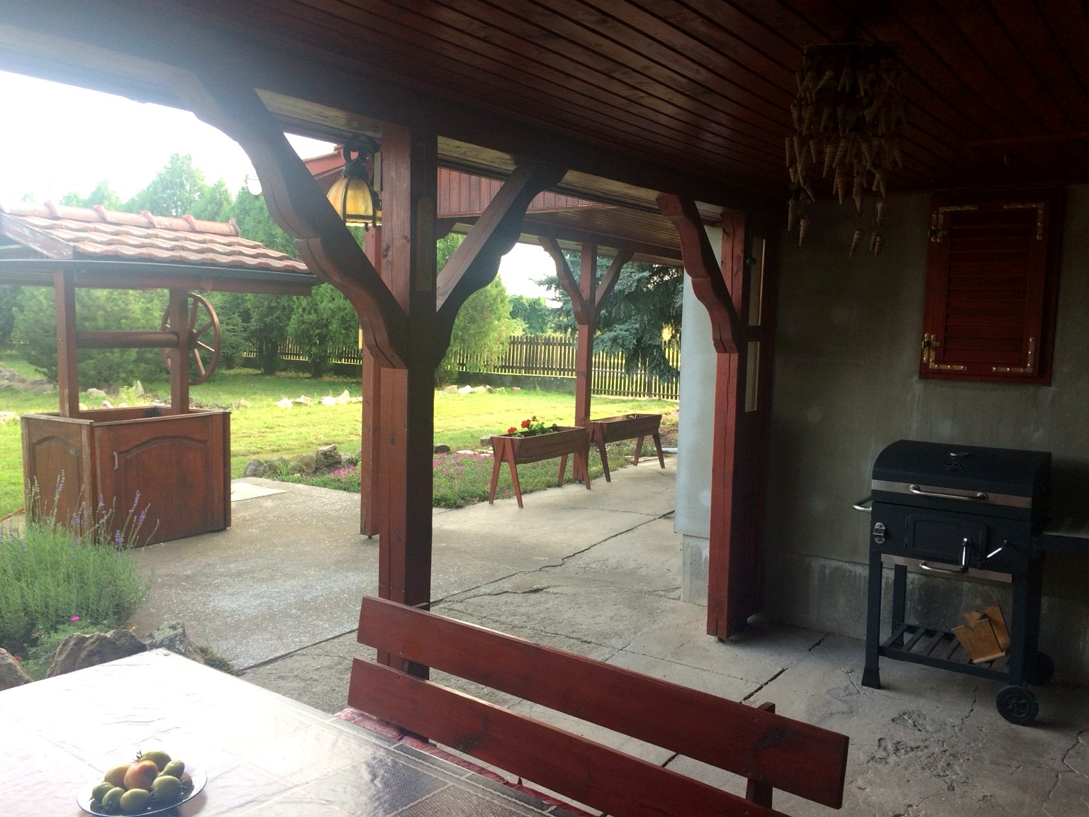 There is a 25 meter deep well with water pump with unlimited clean water for watering and in case anyone thinking to make a pool. Plus the 1000 sqmeter land what preserved for farming, the soil is vey fertile and has possibly for build another house on it, because part of property and there is a second entrance to it from a side road, easily can get permission for construction.