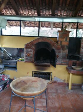 • Separate giant wood-fired oven with gas and wood stoves
