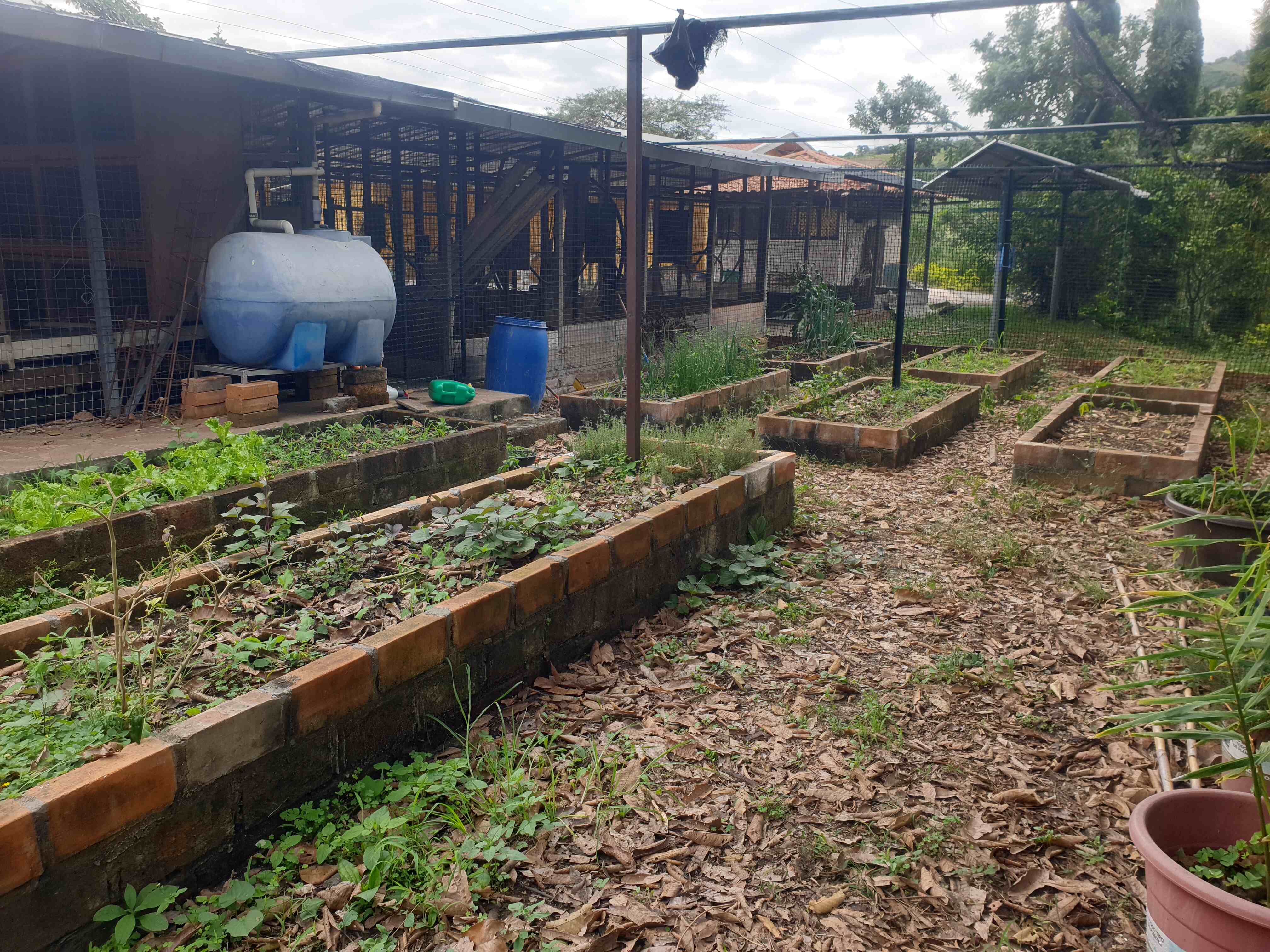 A wide variety of fruit trees (orange, mango, avocado, banana, etc.), medicinal plants, and vegetable gardens with easy water access — perfect for a self-sufficient lifestyle.