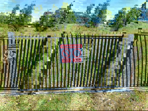 *Security & fencing: Massive steel entrance gate and 500+ meters of acacia posts prepared for perimeter fencing
