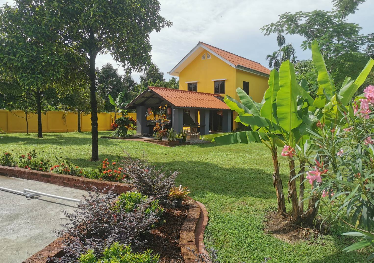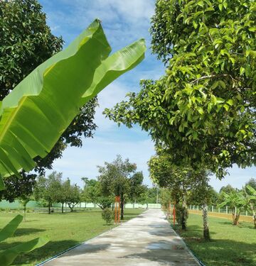 The estate features a productive and beautifully maintained organic fruit garden with a wide variety of mature trees, including: Durian, Mangosteen, Rambutan, Marian Plum, Avocado, Mango, Banana, Coconut, Longkong, and more.