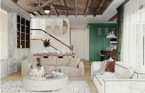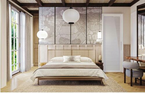 • Ceilings made of natural rattan and wood.