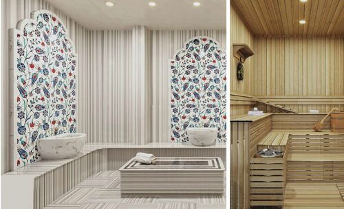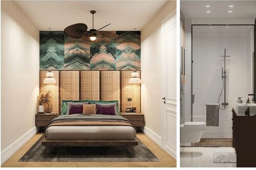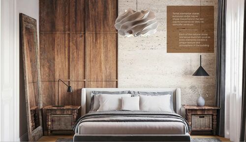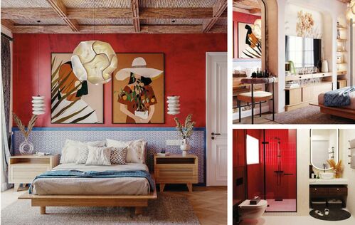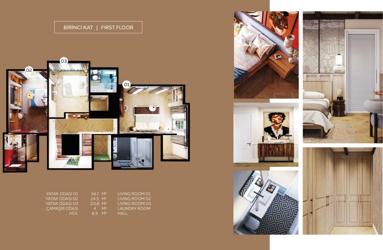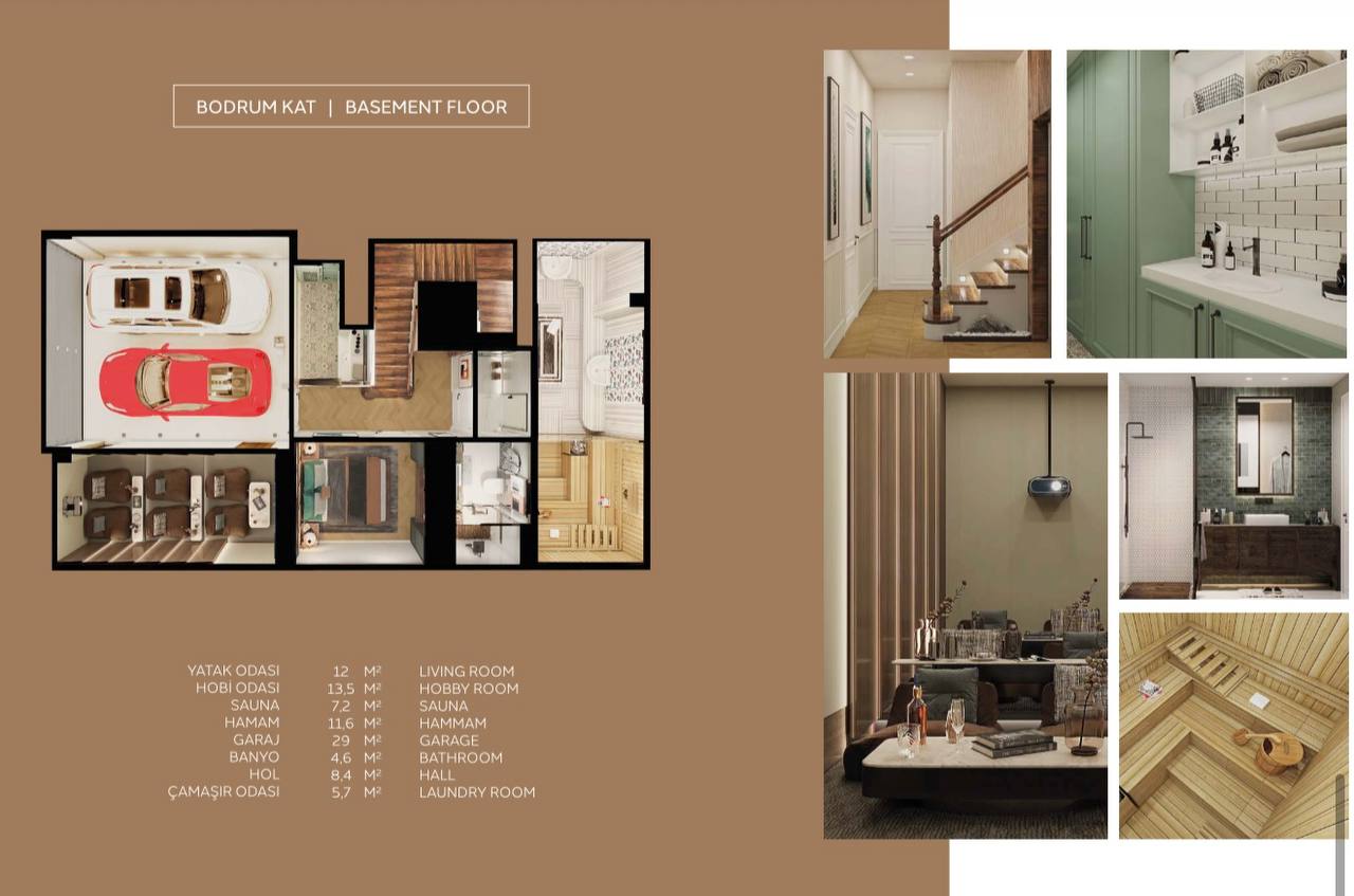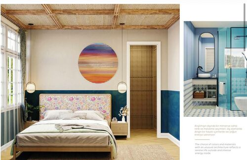 • Second floor: Master bedrooms with en-suite bathrooms. Each bedroom is designed in a unique color scheme using premium materials (wood, travertine).