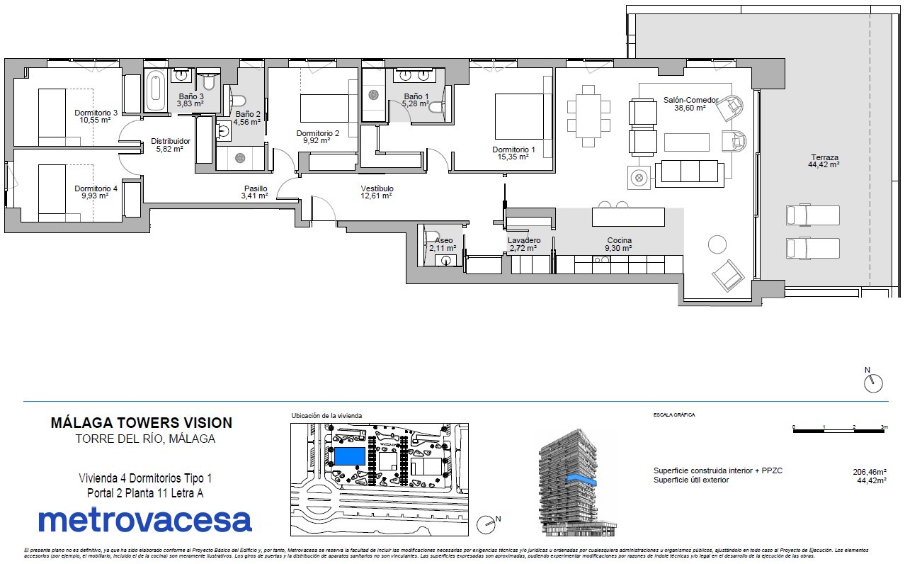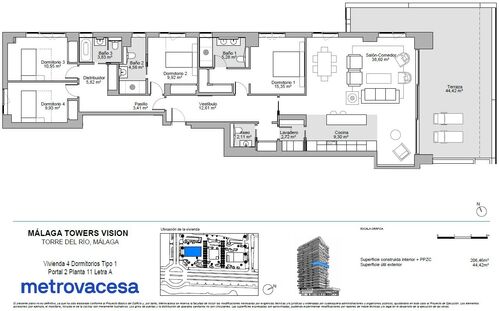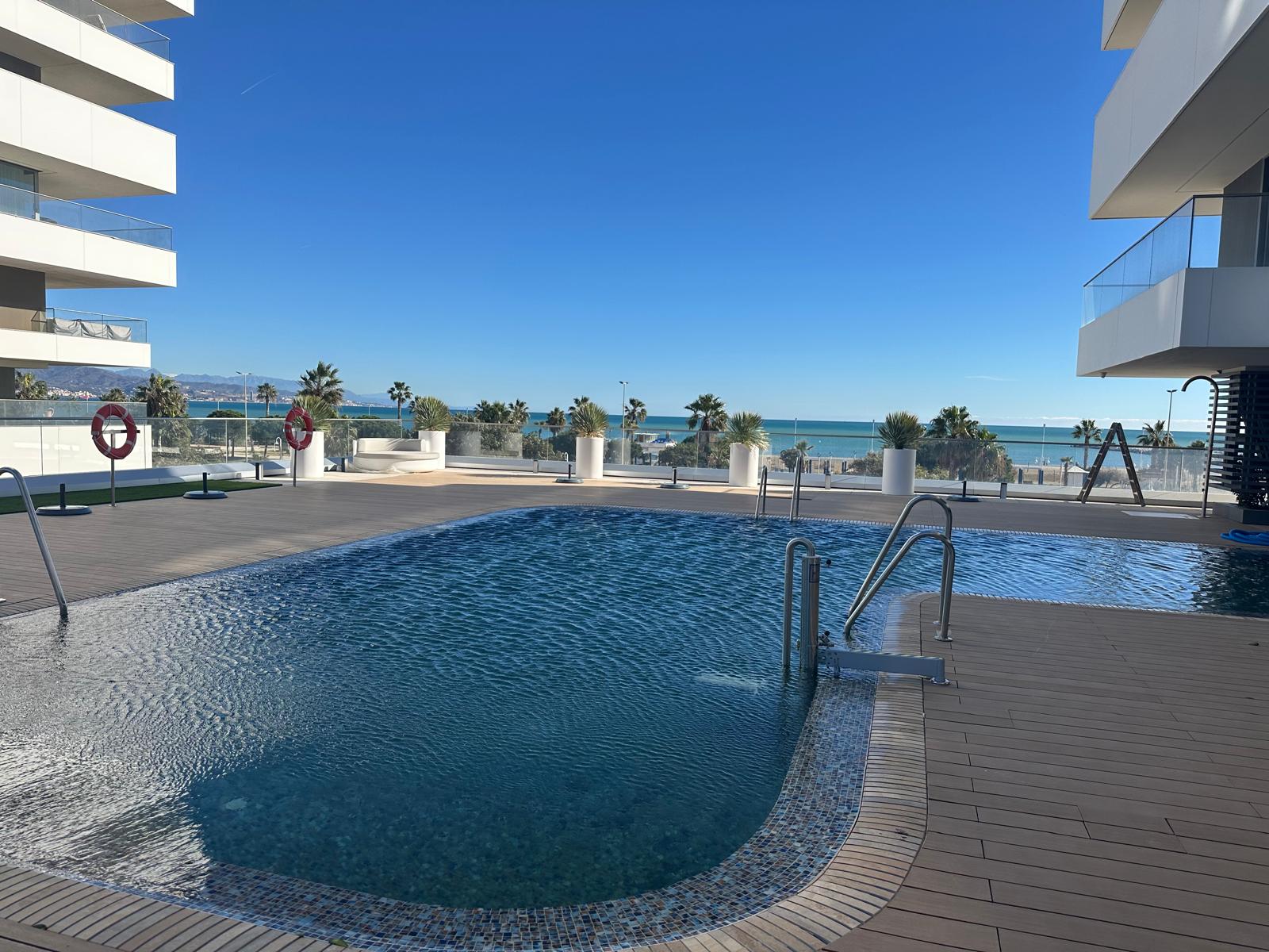 Espectacular piso en esquina y primera linea de playa. La torre Vision de las Malaga Towers ofrece un estilo de vida inigualable. Orientación sur que garantiza luz natural y sol durante todo el día, la vivienda cuenta con un amplio salón-comedor ideal para disfrutar de momentos en familia o con amigos. La cocina abierta a salón es perfecta para los amantes de la cocina, y la impresionante terraza de 44 metros cuadrados te permitirá relajarte y disfrutar de la intimidad con vistas al mar.