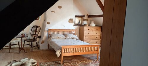 to the rear has views over the South facing garden and woodland. There is also a large 11KW Godin wood burner installed.