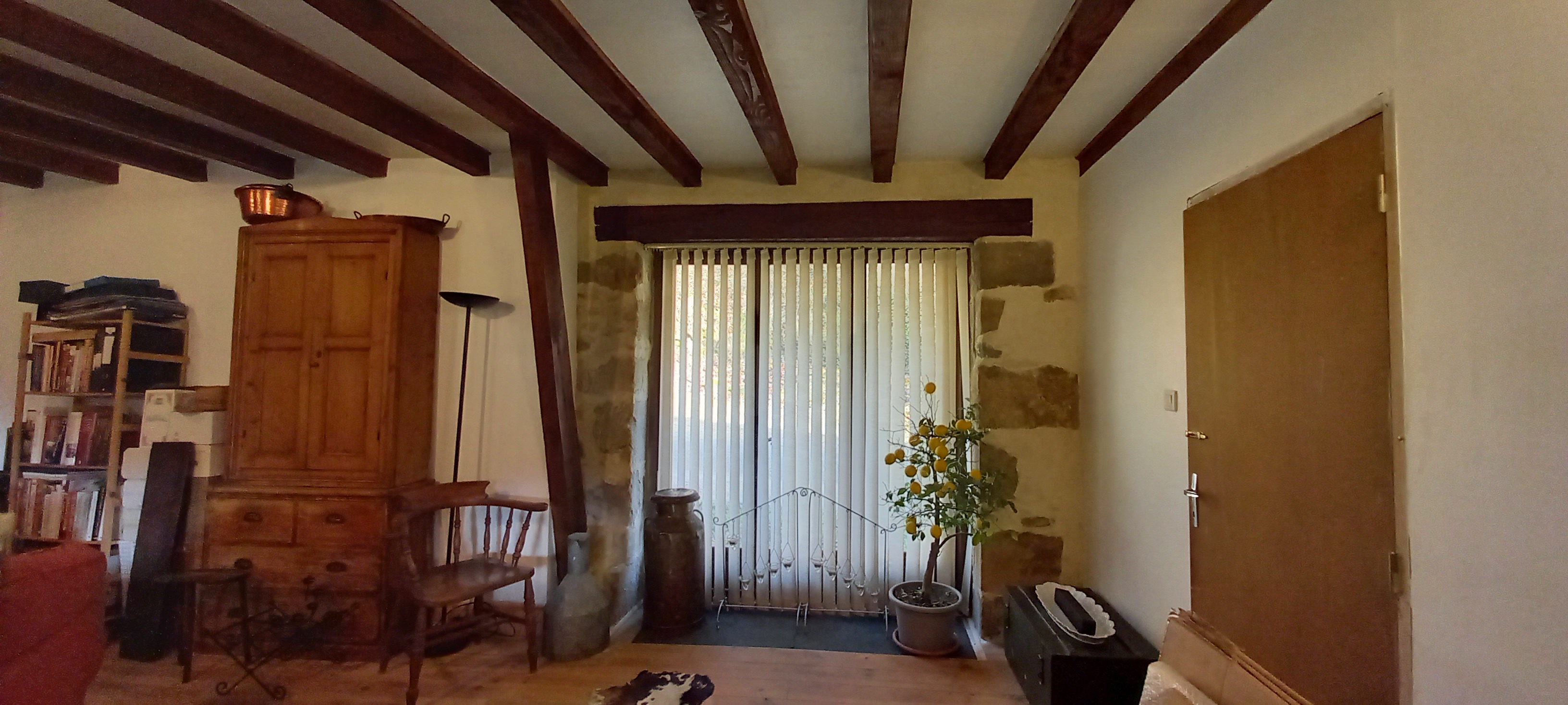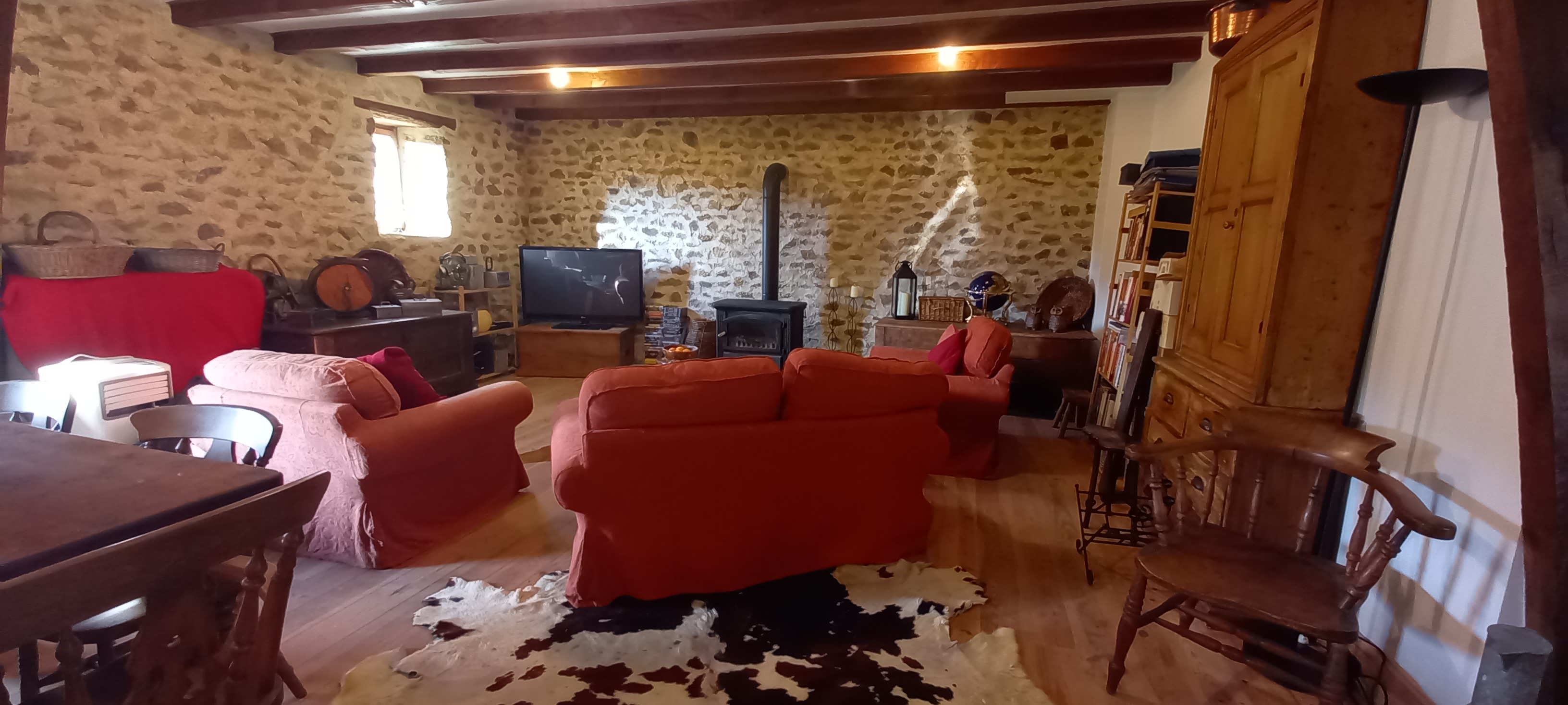 The house consists of a large french farmhouse kitchen and dining room (49m2) and benefits from a professionally installed pellet burner with wifi connection, all usual plumbing and double glazed windows.