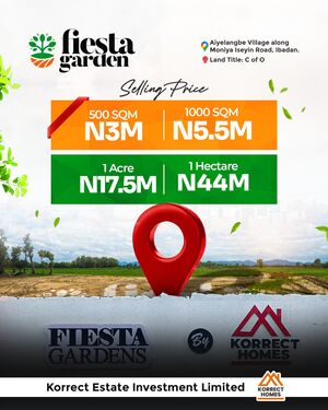 Welcome to Fiesta Gardens Phase 1, a visionary estate development perfectly positioned along the Moniya–Iseyin Expressway — the new growth corridor redefining Ibadan’s real estate landscape.